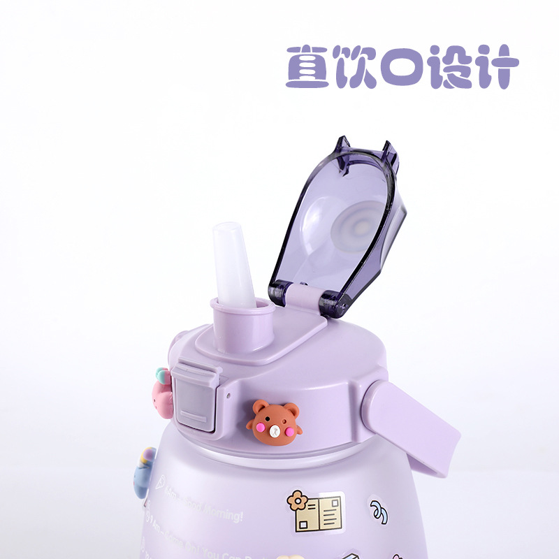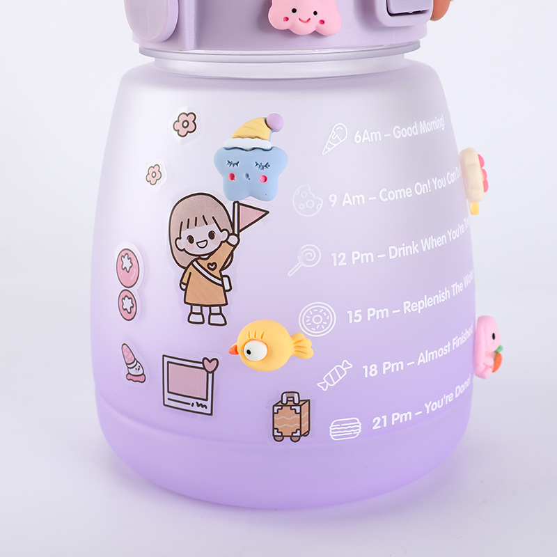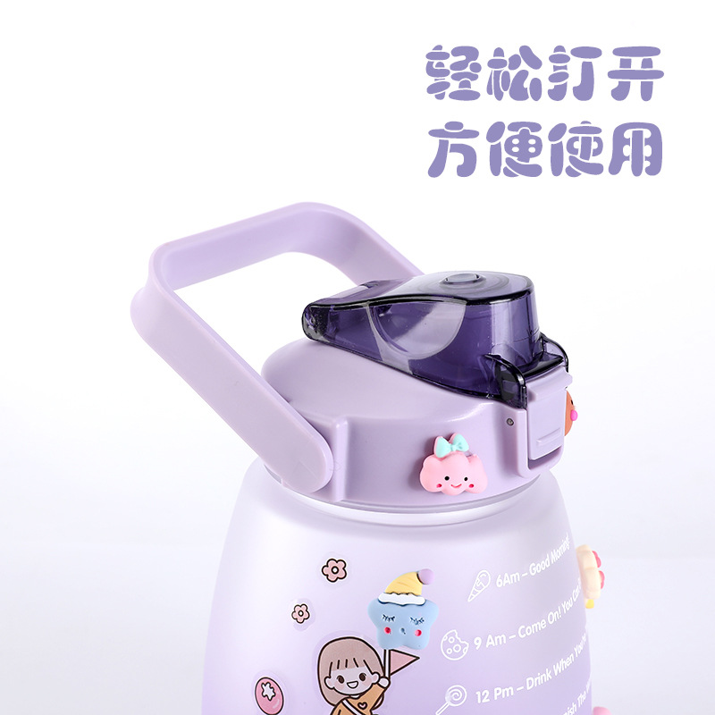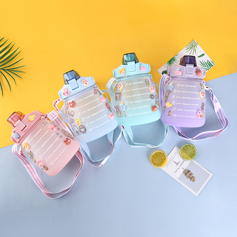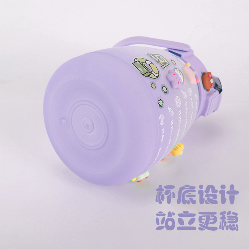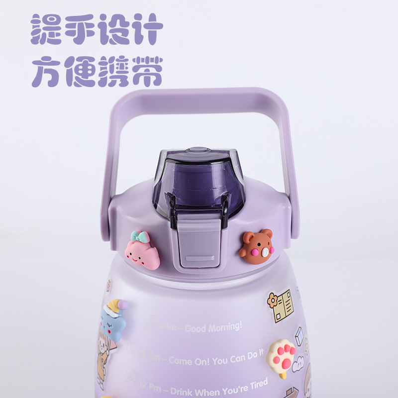 Taza de agua de plástico de grado alimenticio de gran capacidad de color gradiente portátil de paja de dibujos animados taza de abdomen de gran mango elástico tetera de agua