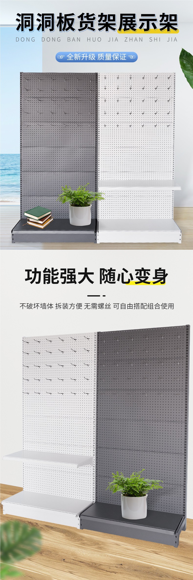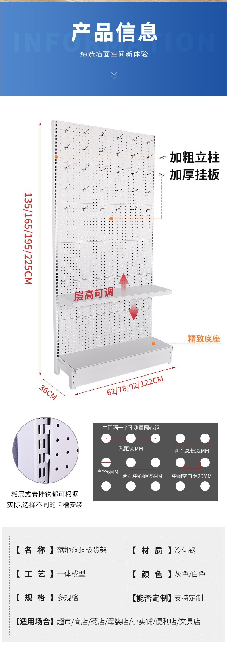Estante de tablero de agujero, accesorios de teléfono móvil engrosados, tablero colgante de agujero, estante de exhibición de joyería, estante colgante de calcetines de papelería contra la pared