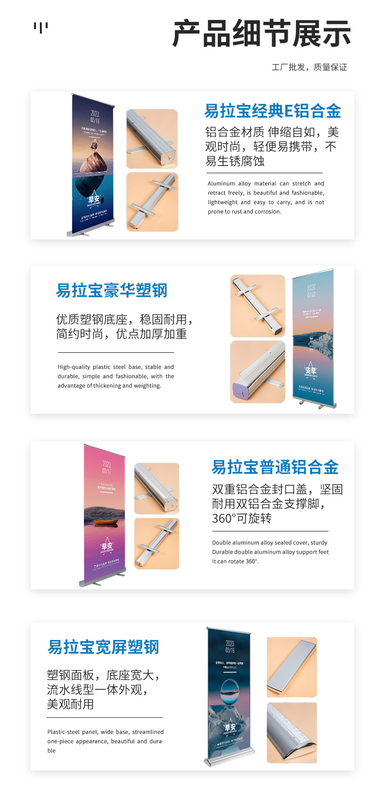 Soporte de exhibición de carteles de aleación de aluminio enrollable portátil al por mayor de fábrica