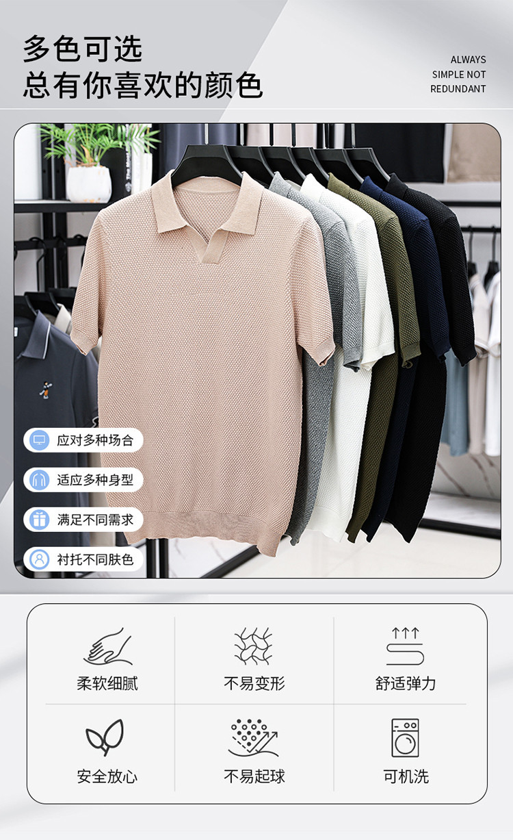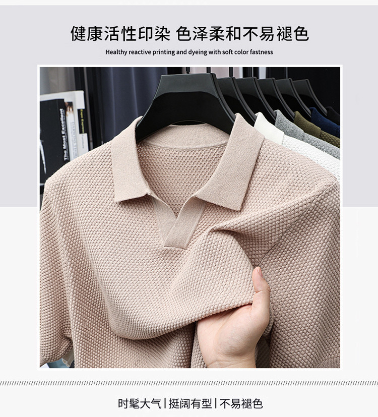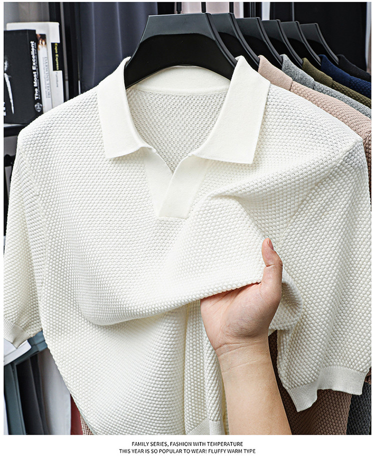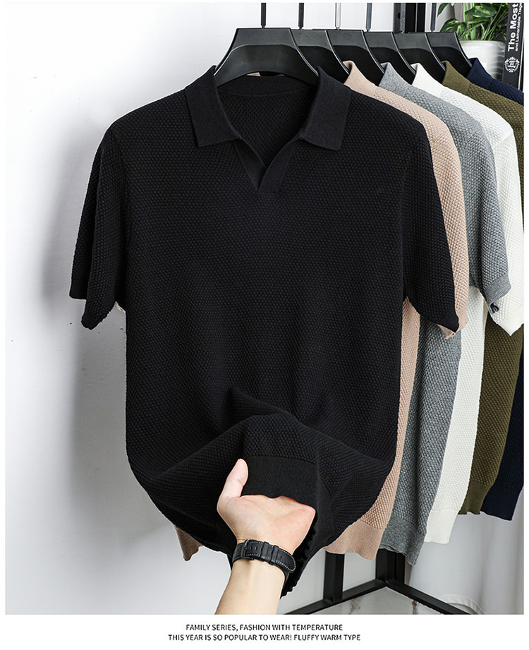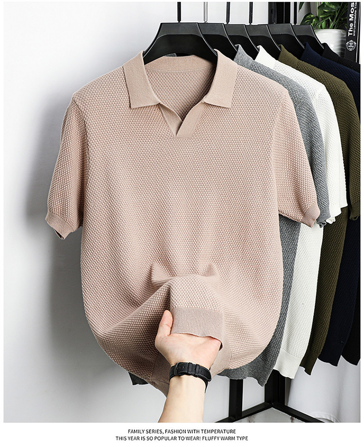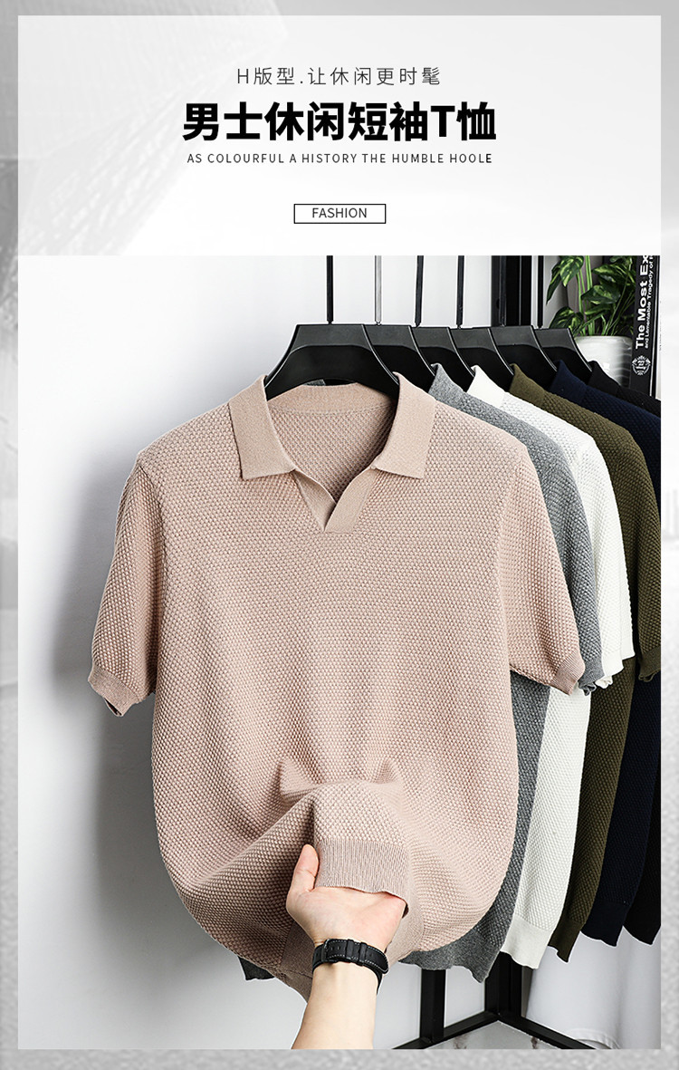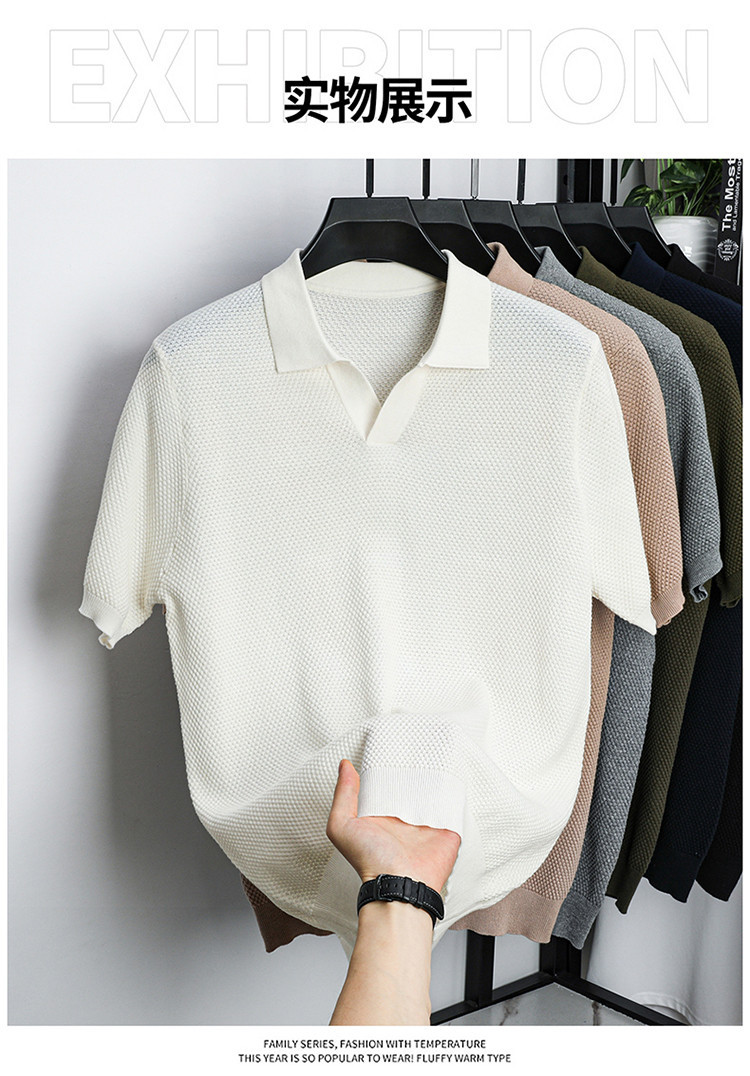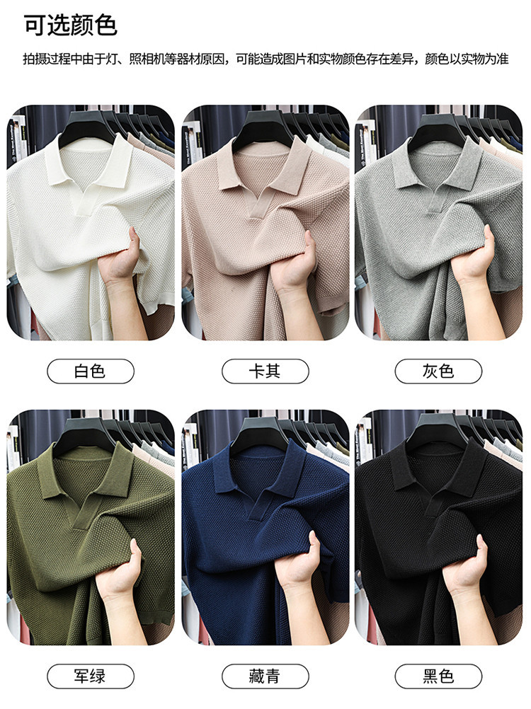 ¡Fibra fría japonesa! Camisa POLO de solapa para hombre de manga corta Camisa de gama alta de algodón Xinjiang casual todo fósforo
