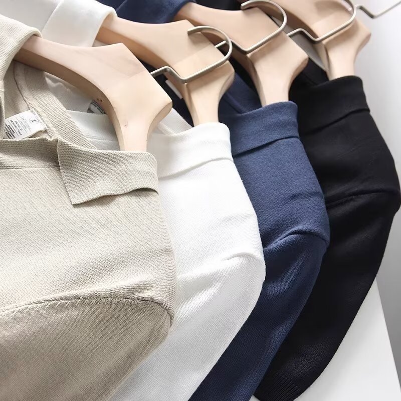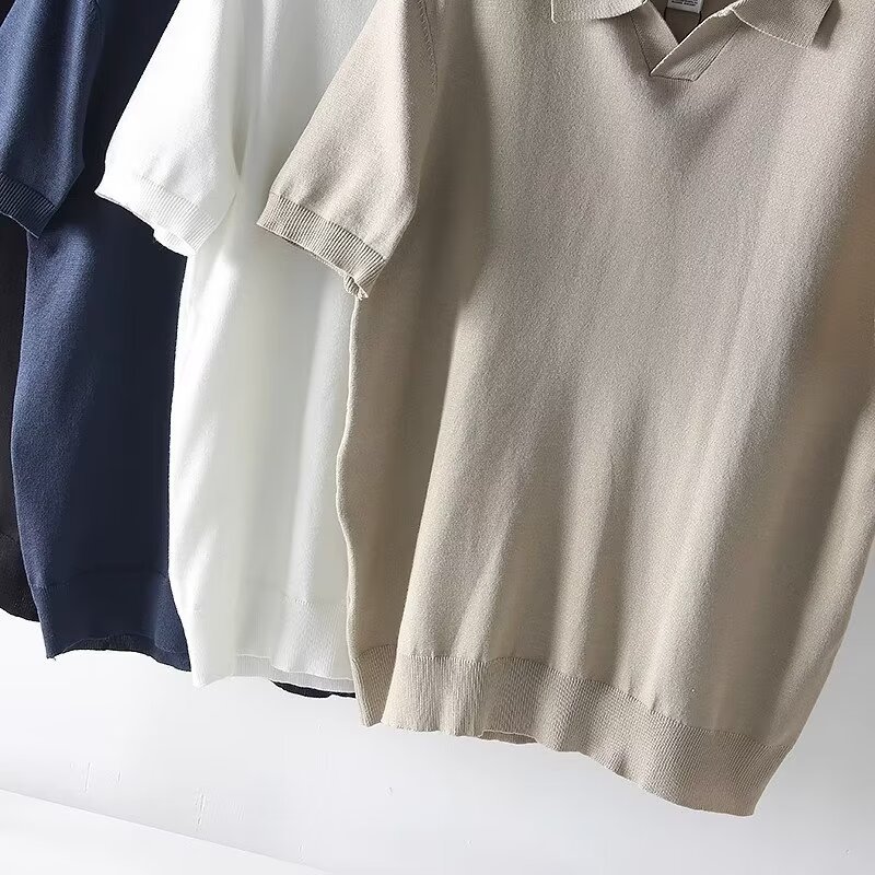 El viento ligero maduro de verano delgado hombre delgado casual polo camiseta americana de moda retro simple camiseta de manga corta moda hombre