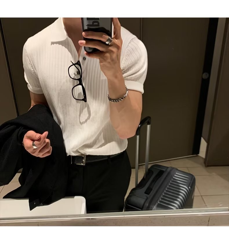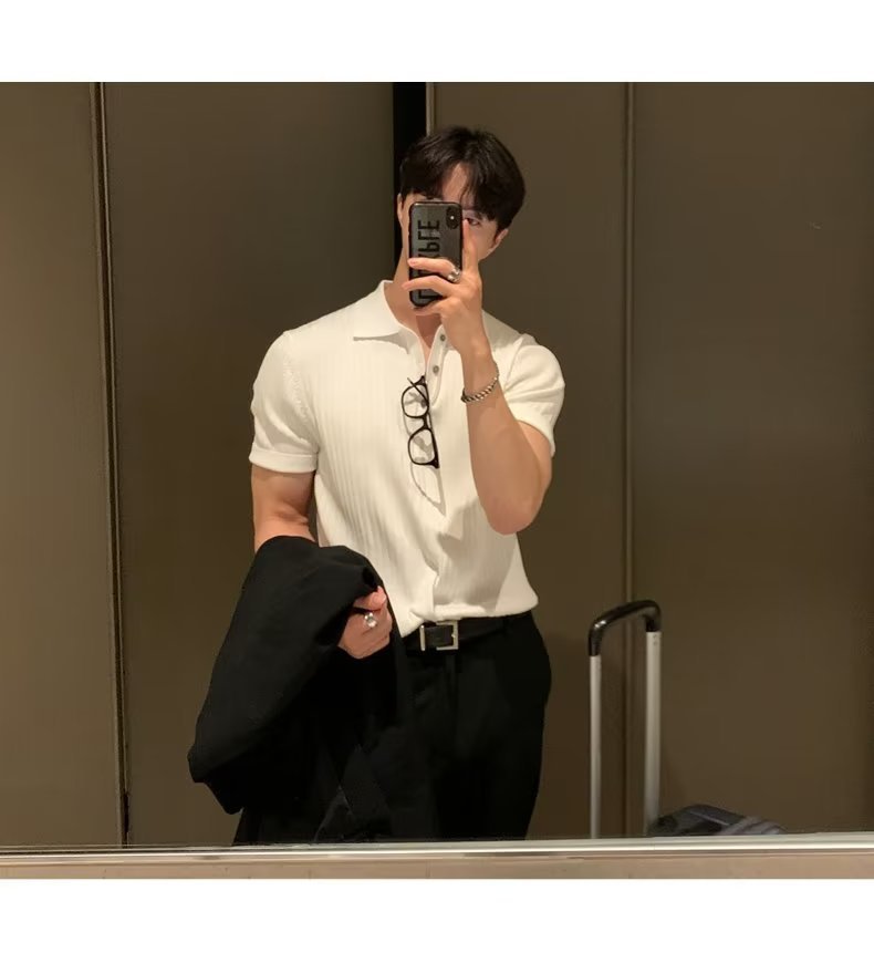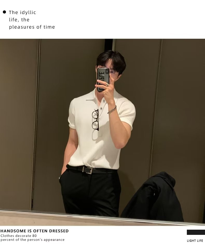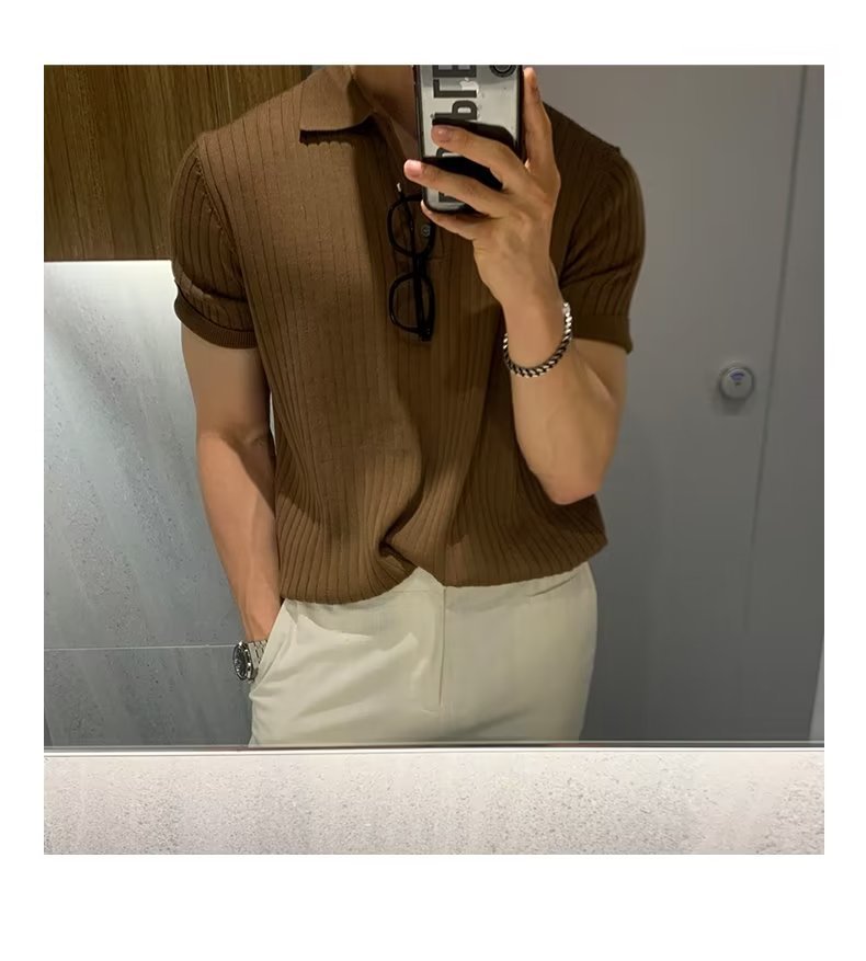 Negocio ligero estilo maduro hombres POLO manga corta verano nuevo estilo solapa botón suéter delgado comercio exterior transfronterizo al por mayor