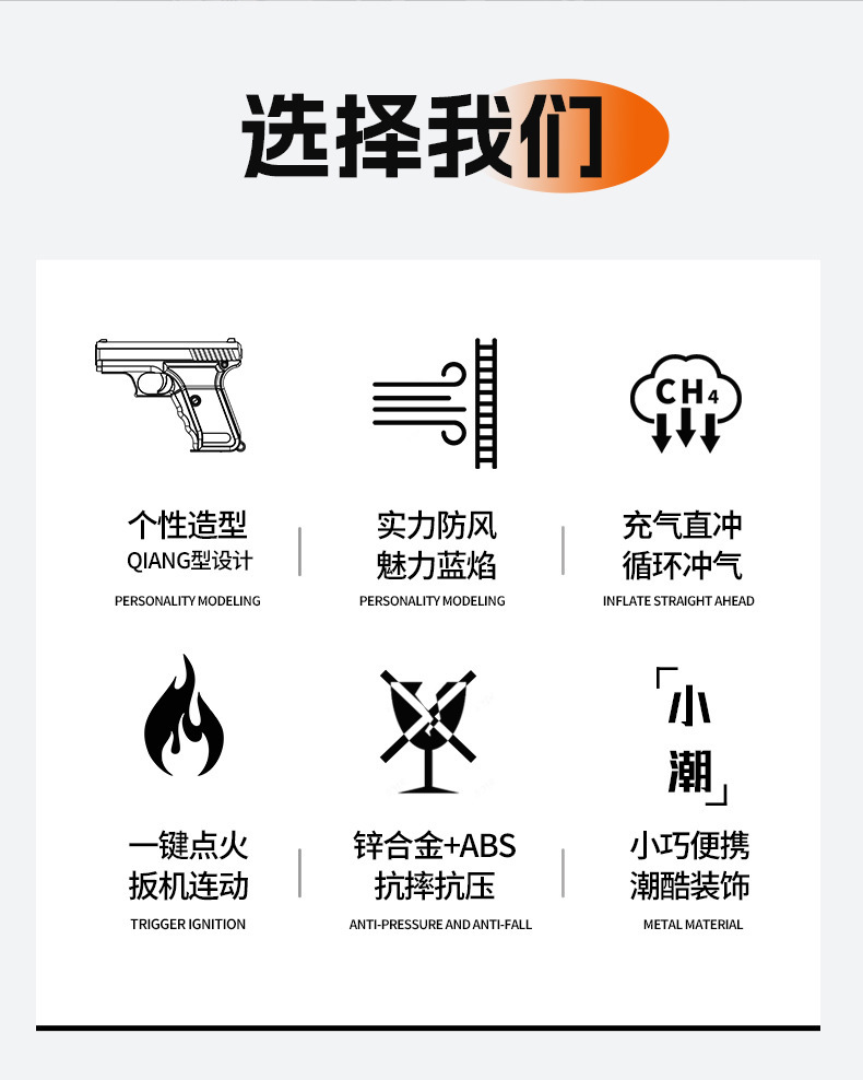 Encendedor de gas a prueba de viento con llama azul