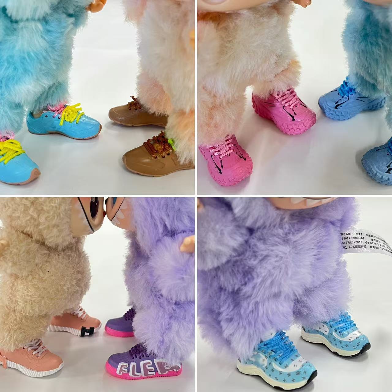 LABUBU Zapatos Rabu Ropa de bebé 17cm felpa vinilo bolso de muñeca colgante para zapatos desnudos caja ciega