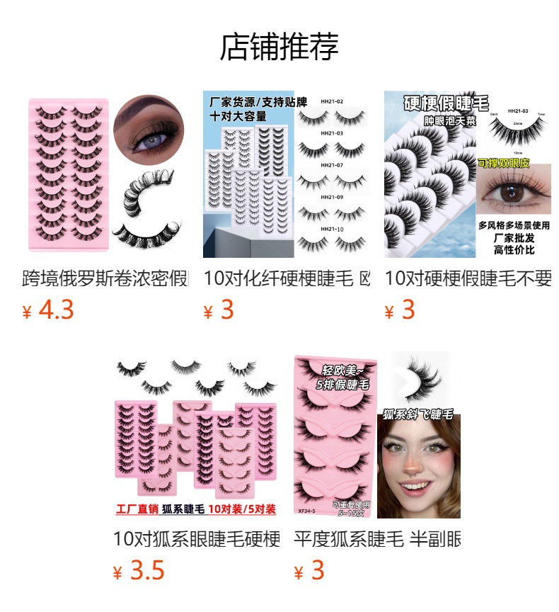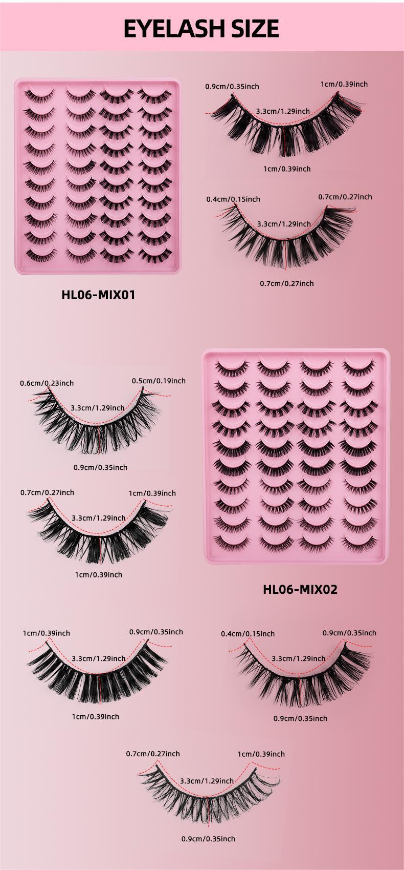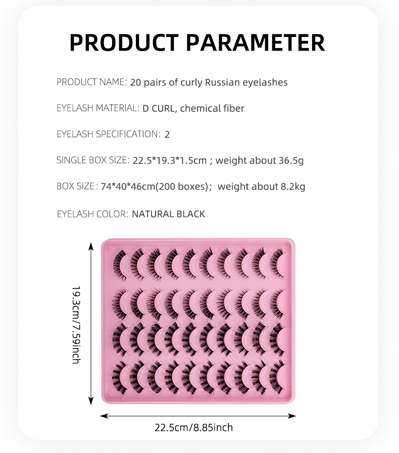 Amazon Rusia pestañas postizas rizadas 20 pares de fibras químicas rizadas tridimensionales, pestañas mixtas gruesas, explosiones transfronterizas