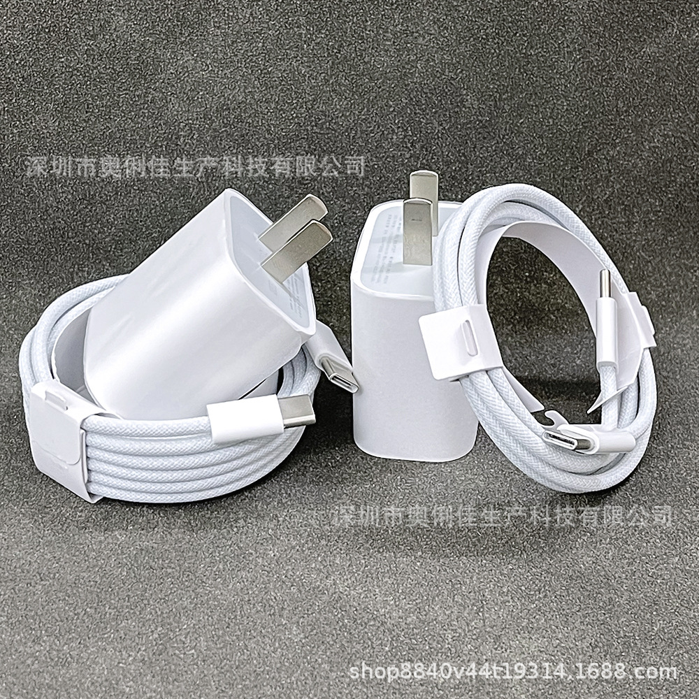 Cabeza de carga rápida 35WPD para cargador Apple 16 Cabeza de carga iPhone15 Cable trenzado de carga rápida Tipo-c dual