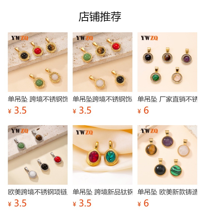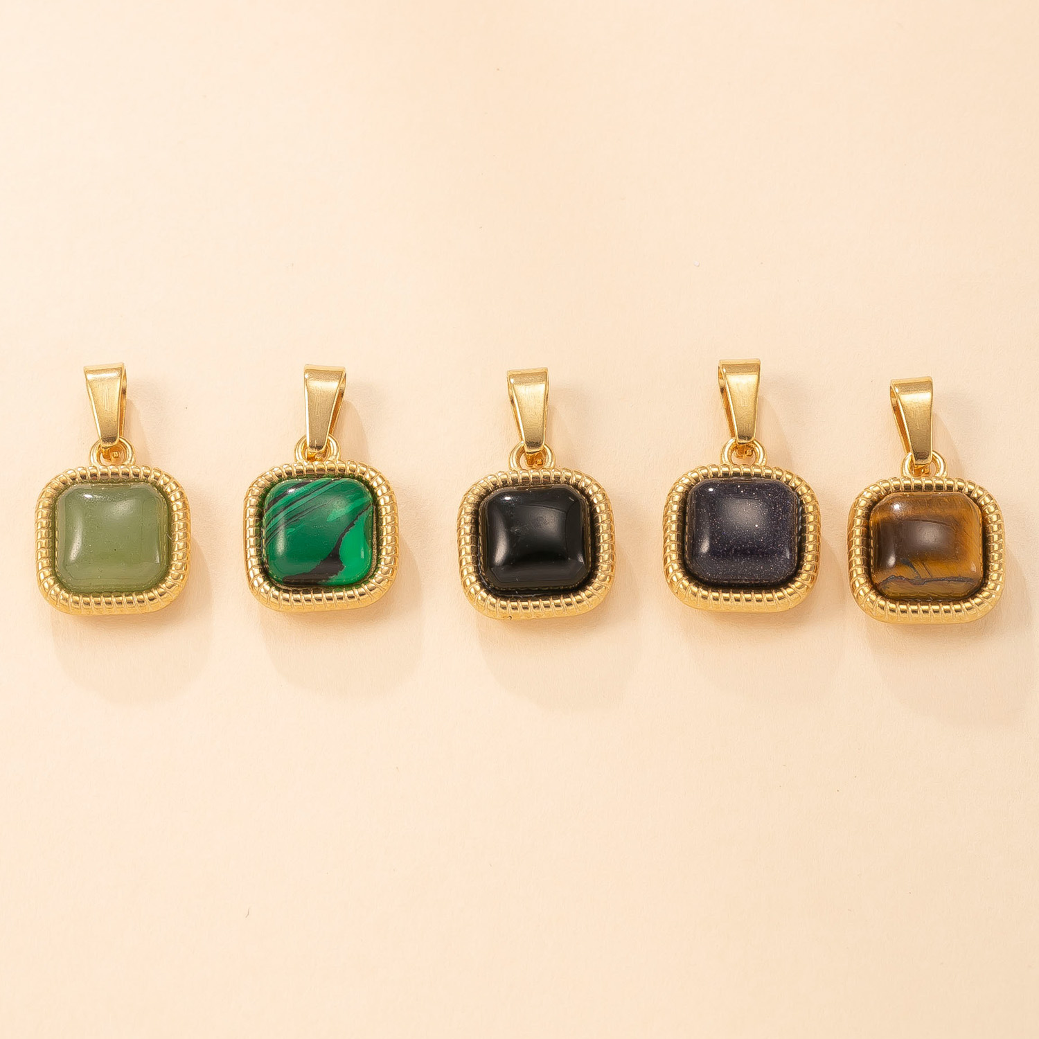 Colgante único Estilo europeo y americano Joyería de acero inoxidable Collar de piedra natural con incrustaciones cuadradas Accesorios de bricolaje de moda fábrica
