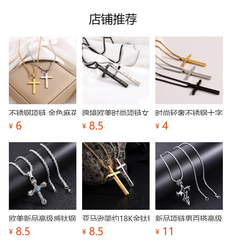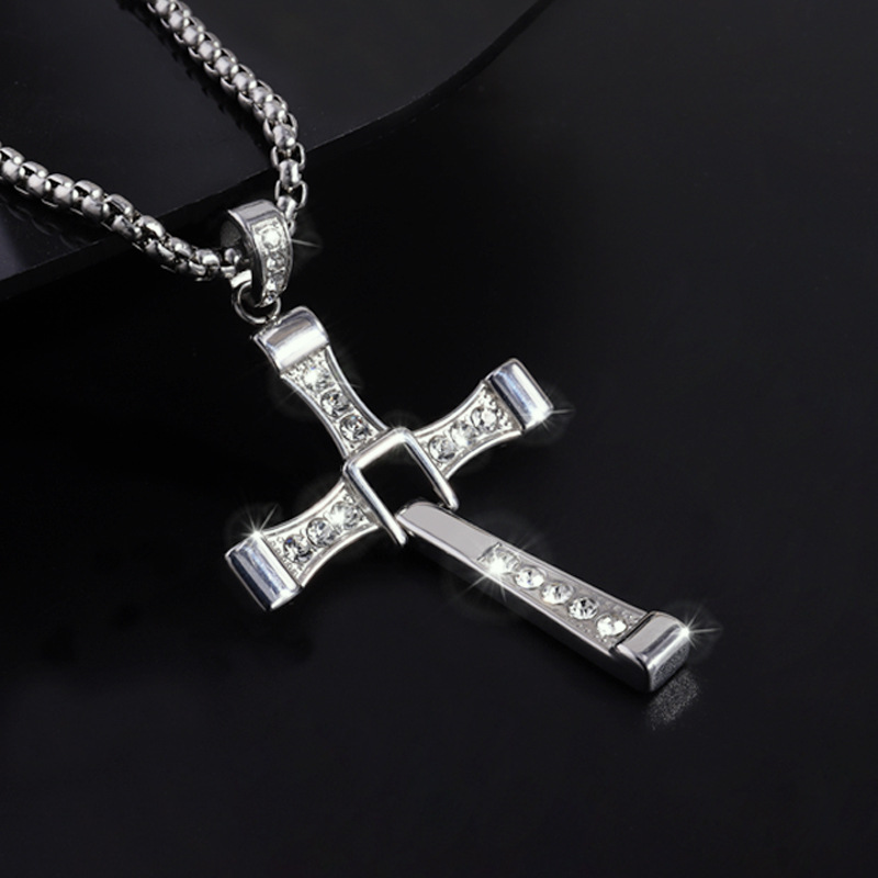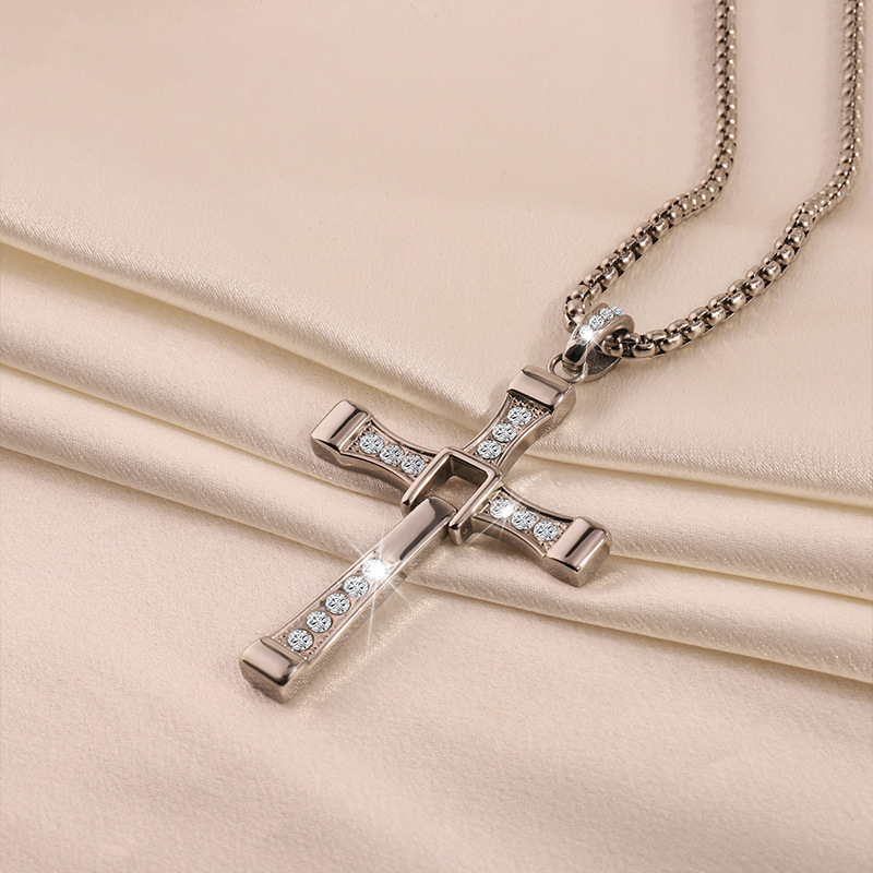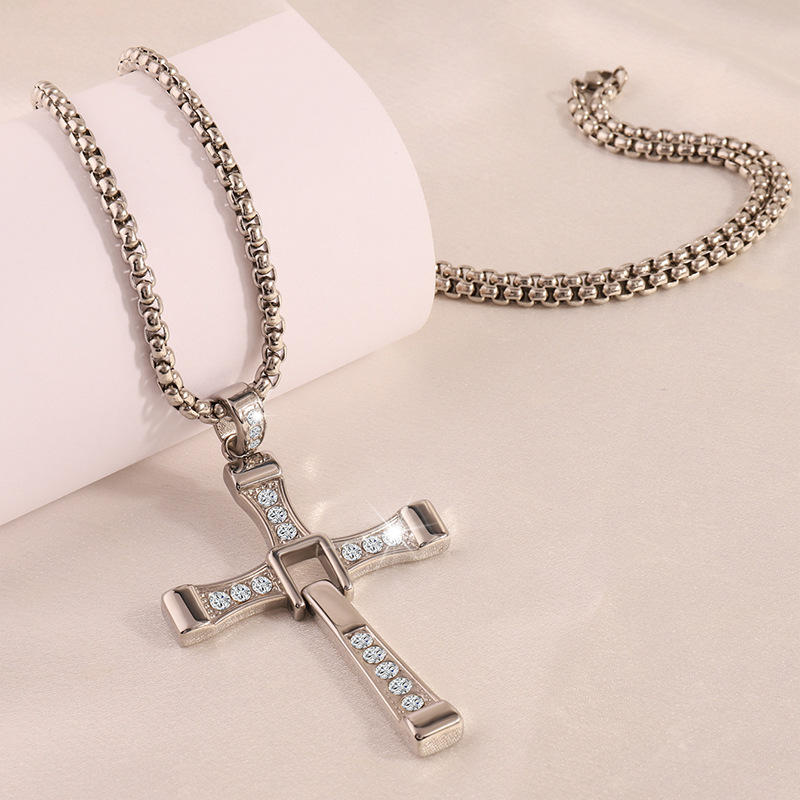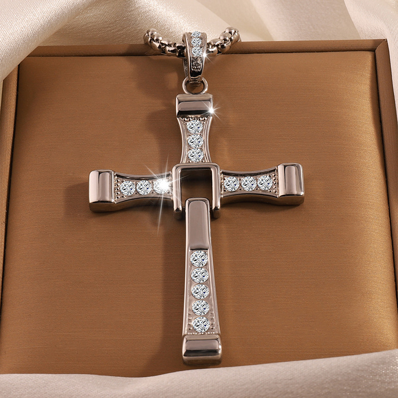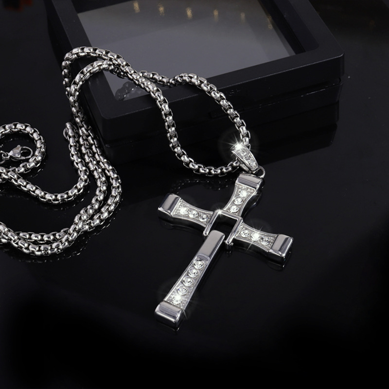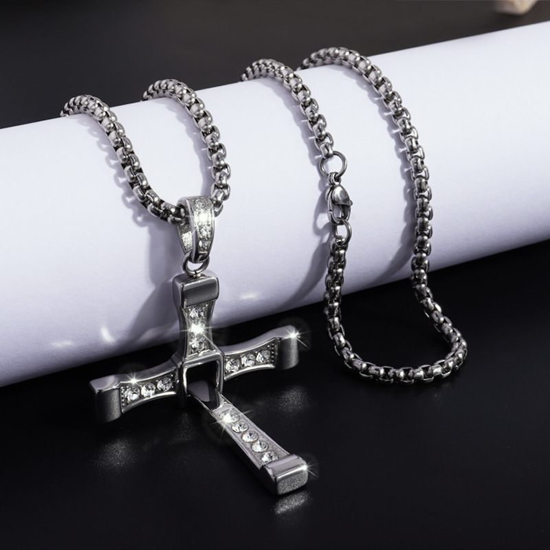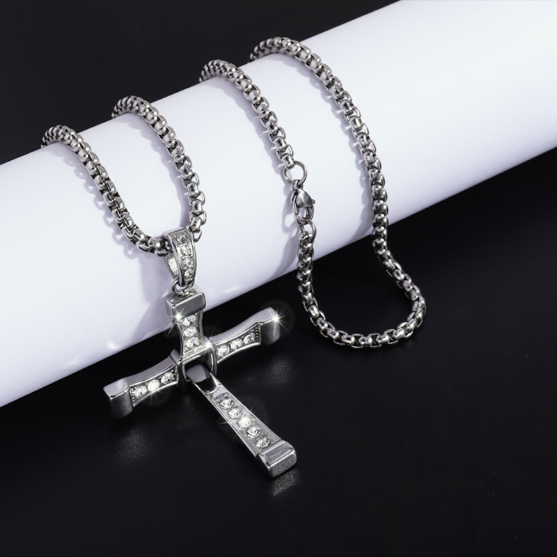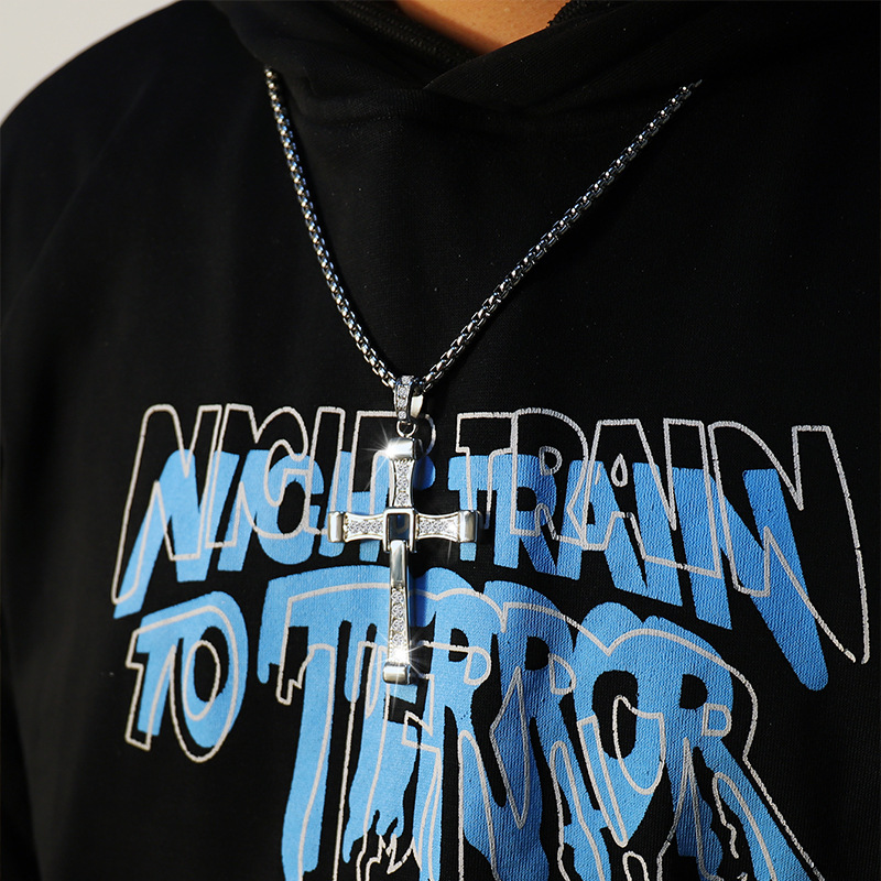 Cross-border nueva personalidad de la moda caliente hip hop de acero inoxidable de diamantes Cruz colgante collar de gama alta todo-fósforo de la joyería