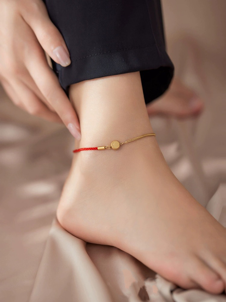 Wenjian suerte de doble cara tridimensional pequeña marca afortunada cuerda roja tobillos mujer temperamento simple 2023 nuevos pies de nicho