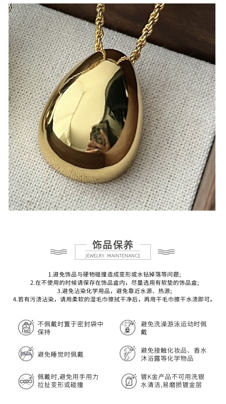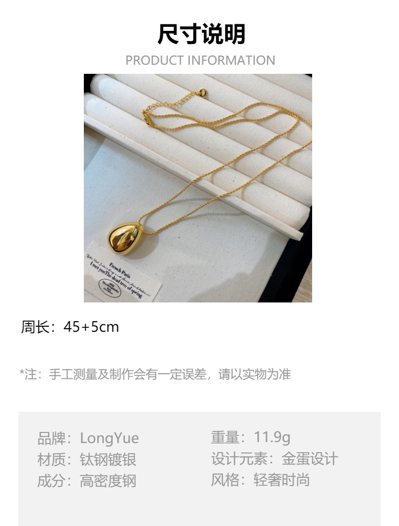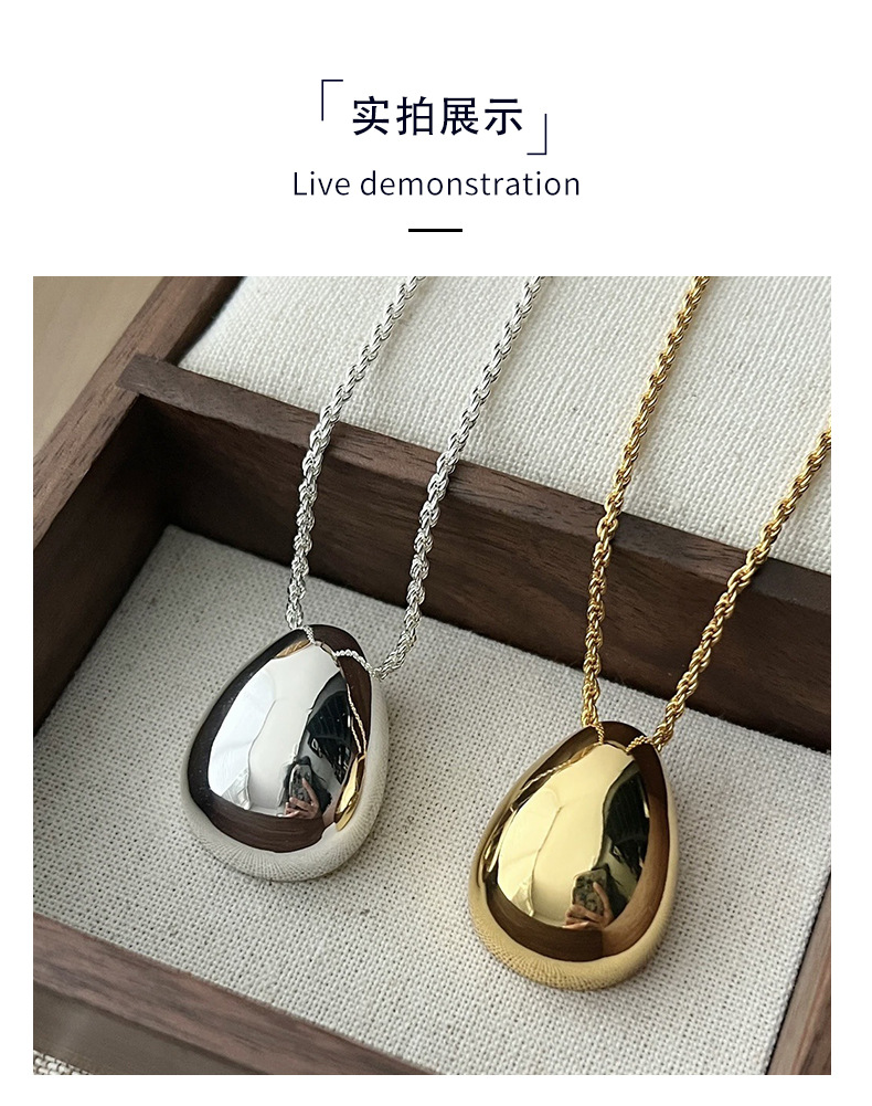 Francés retro europeo y americano nicho diseño huevo gota de agua colgante collar minimalista de gama alta estilo frío plata huevo suéter cadena