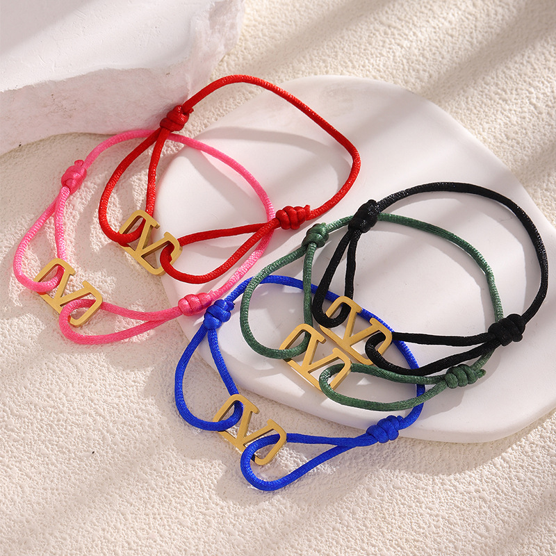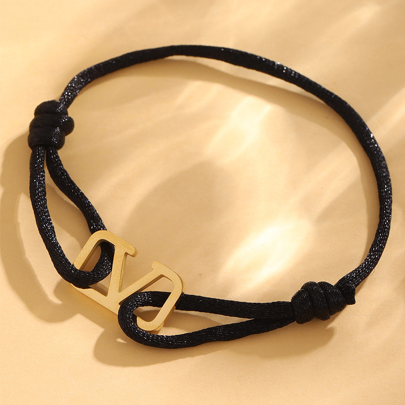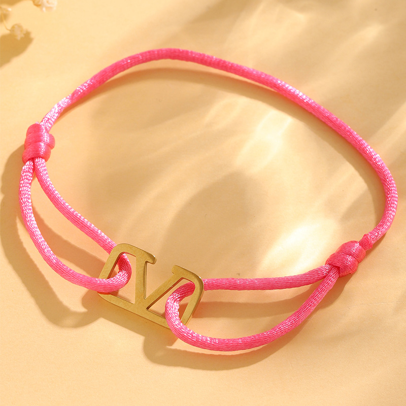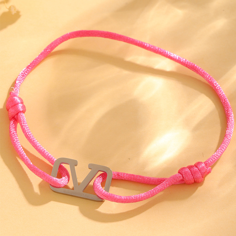 Nueva venta caliente simple cuadrado en forma de V hueca cuerda de mano tejida moda para mujer pulsera de acero inoxidable de nicho joyería