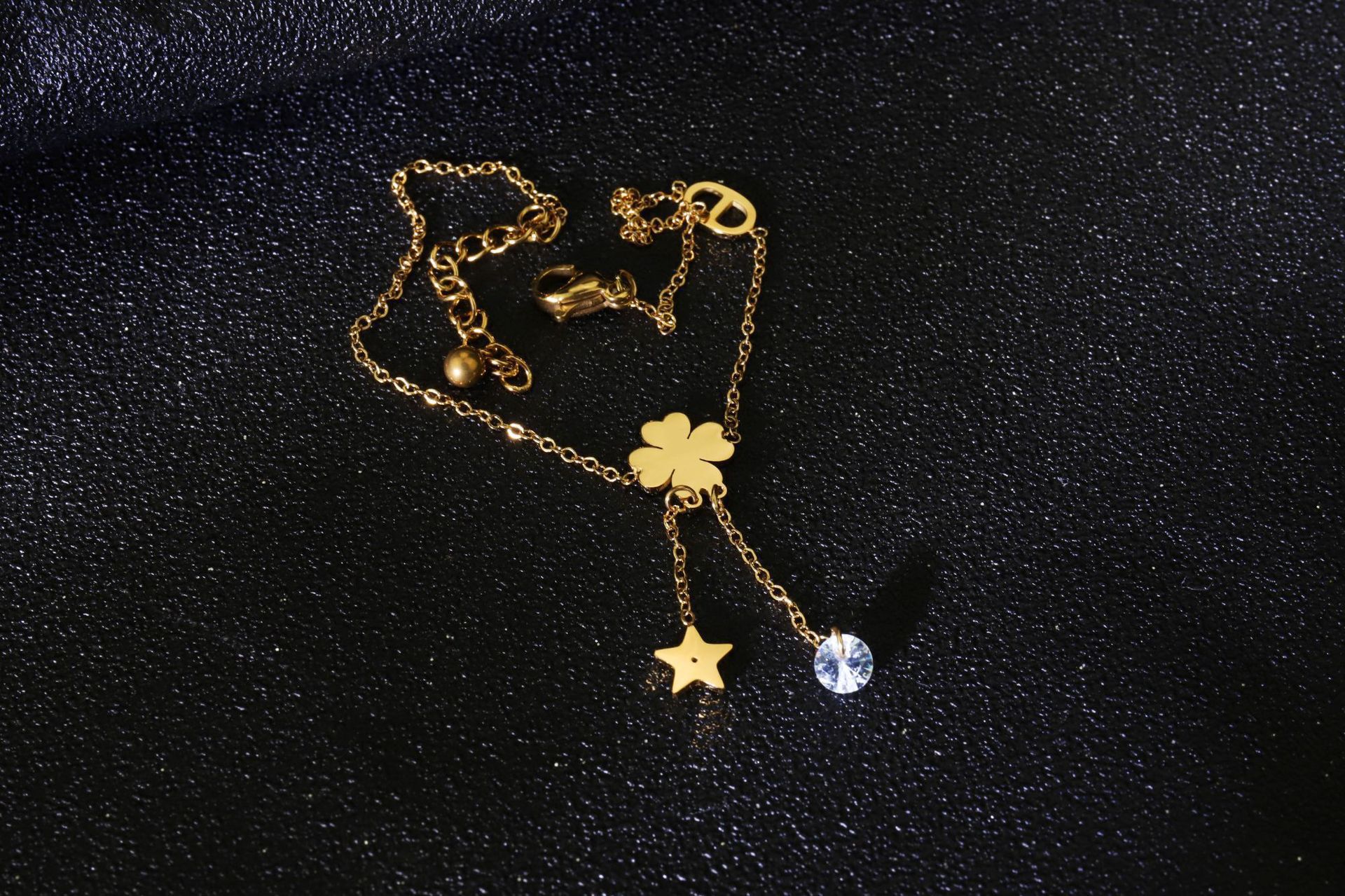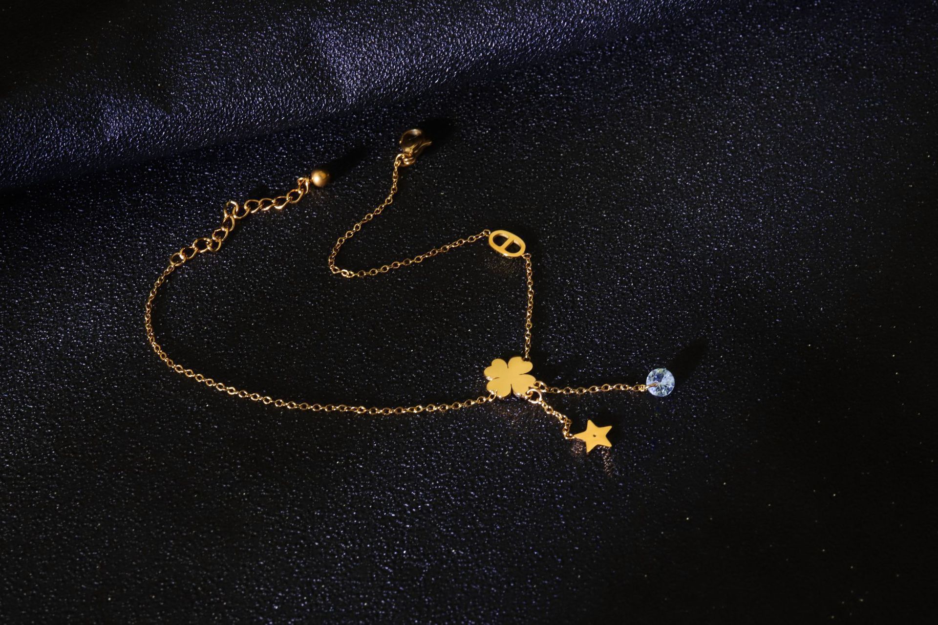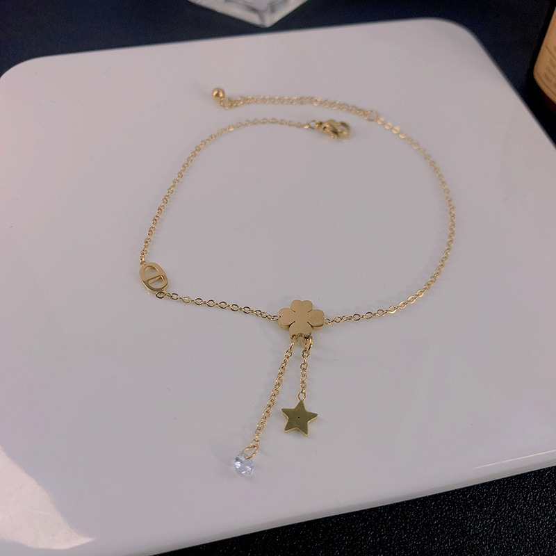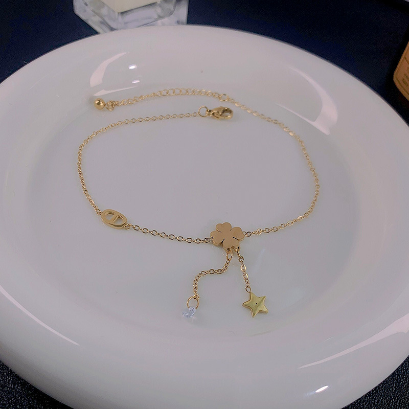 Exquisita tobillera de trébol de cuatro hojas para mujer nuevo diseño de nicho de oro de 14K