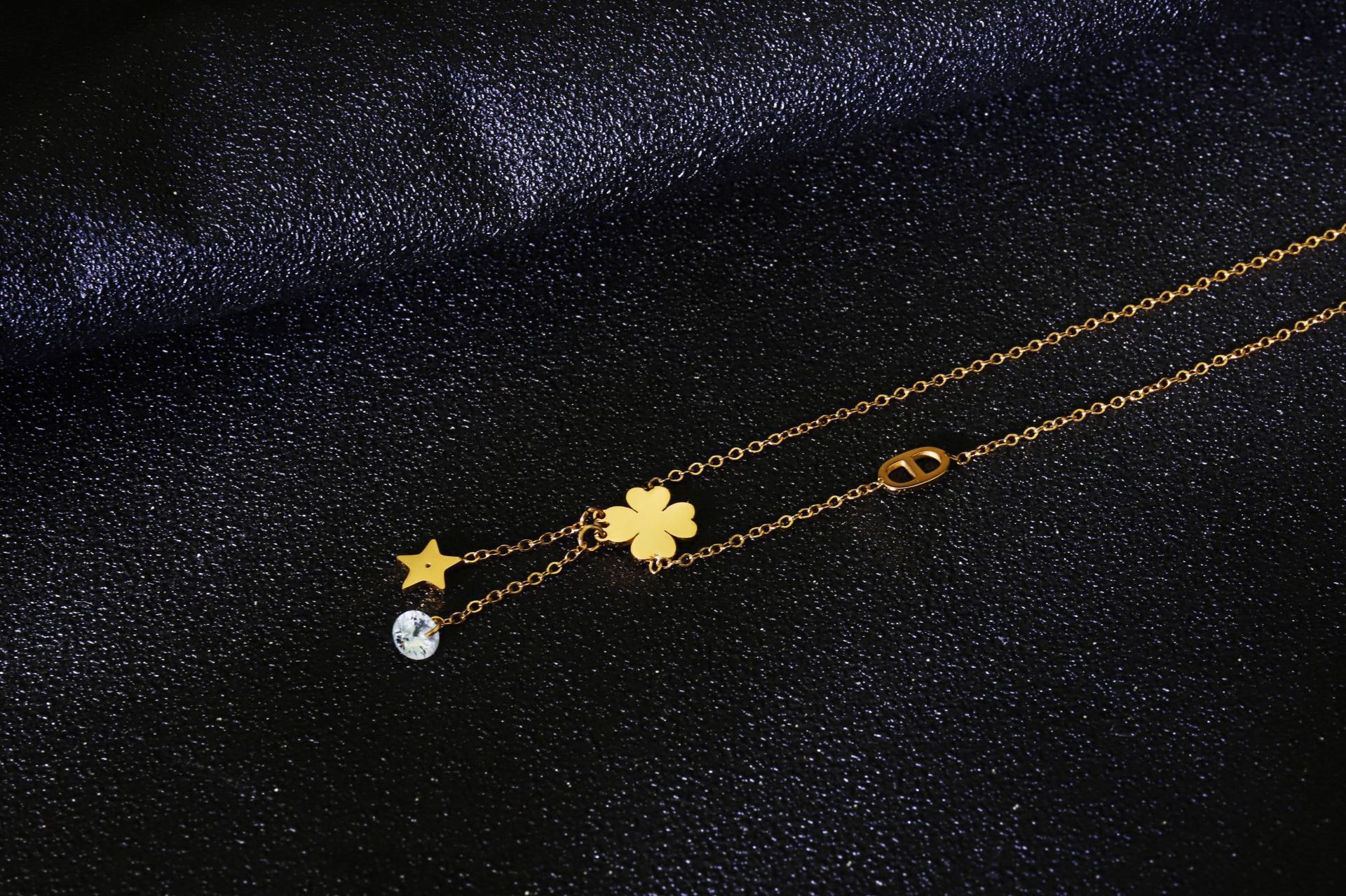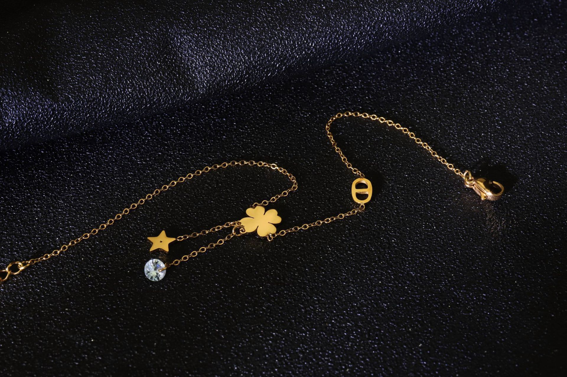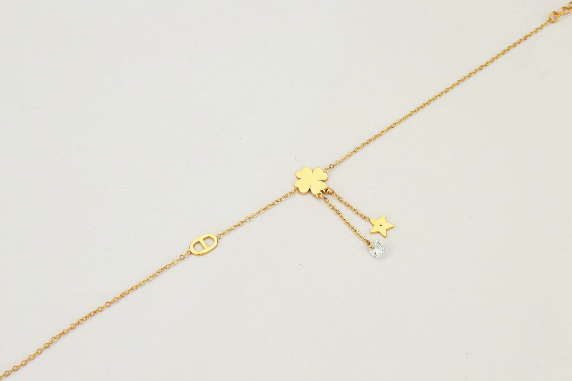 Exquisita tobillera de trébol de cuatro hojas para mujer nuevo diseño de nicho de oro de 14K