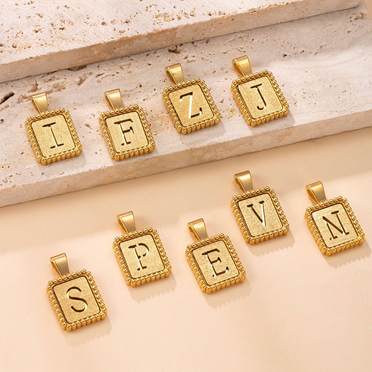 Colgante único Collar de acero inoxidable de moda transfronteriza Colgante de letras de lunares de marca cuadrada fundido Joyas de acero de titanio dorado de 18 quilates