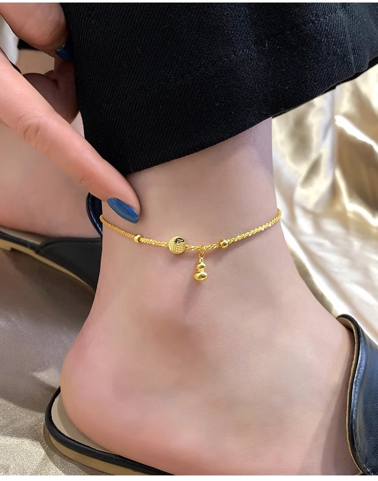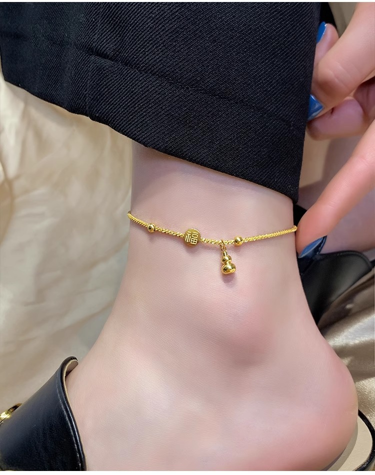 Pulsera de calabaza con carácter de bendición Tobillera para mujer 2025 nuevo estilo moderno nicho exquisito sentido de alta gama Cadena de pie acero de titanio no se desvanece