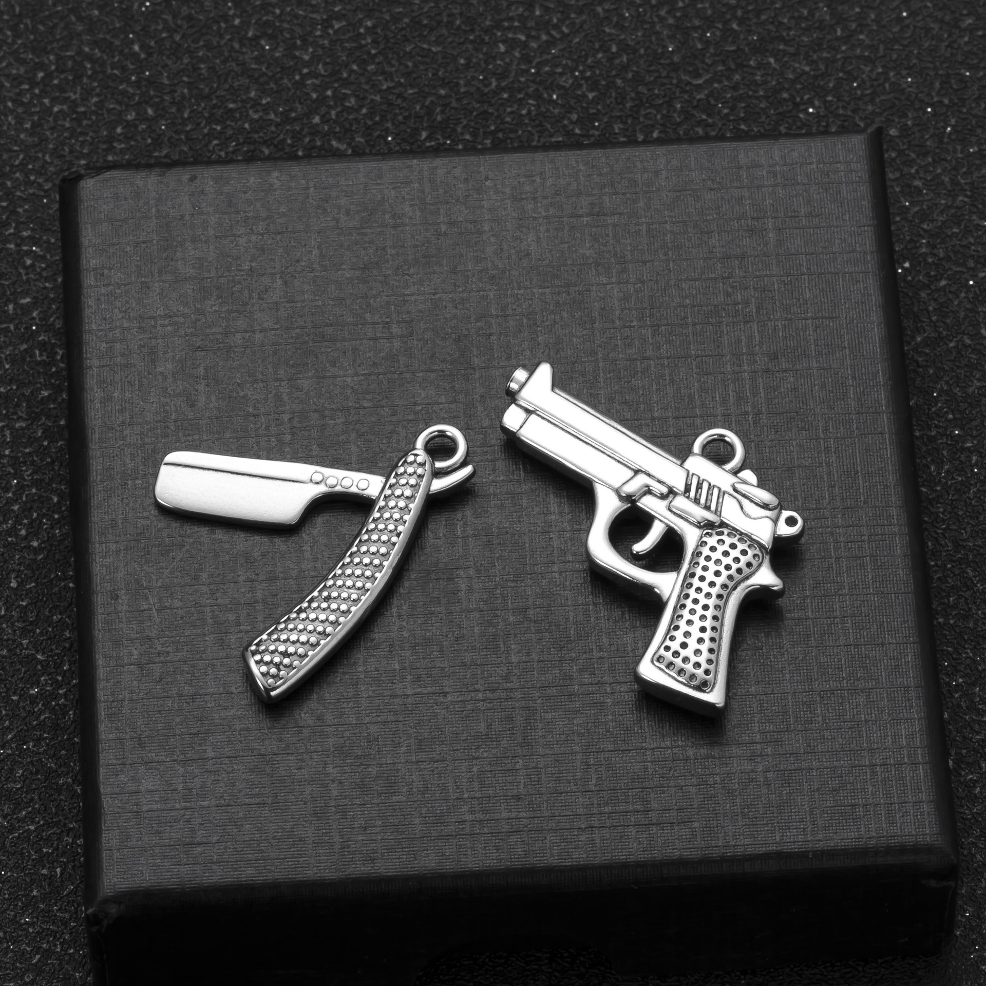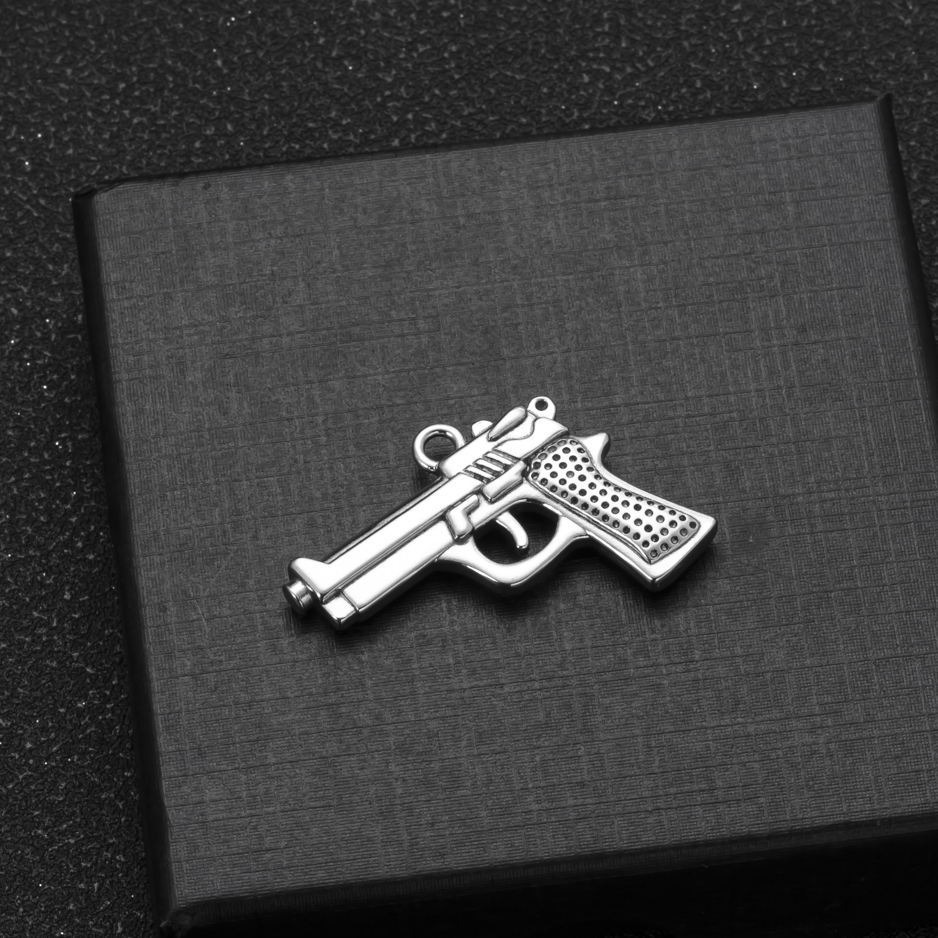 Colgante único europeo y americano venta caliente collar de acero inoxidable colgante de pistola raspador tridimensional calle hip-hop accesorios de joyería de bricolaje