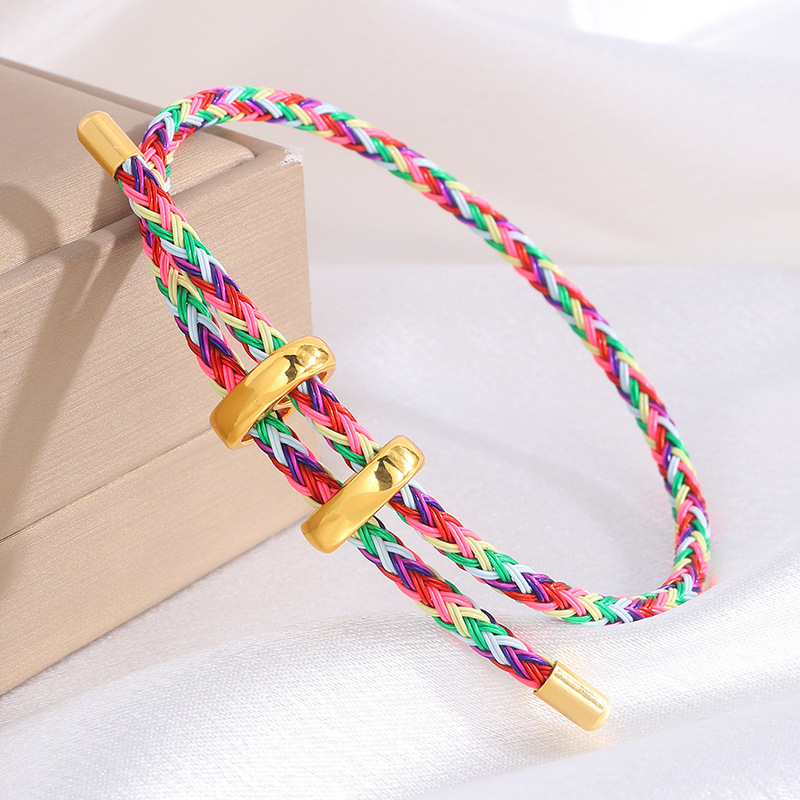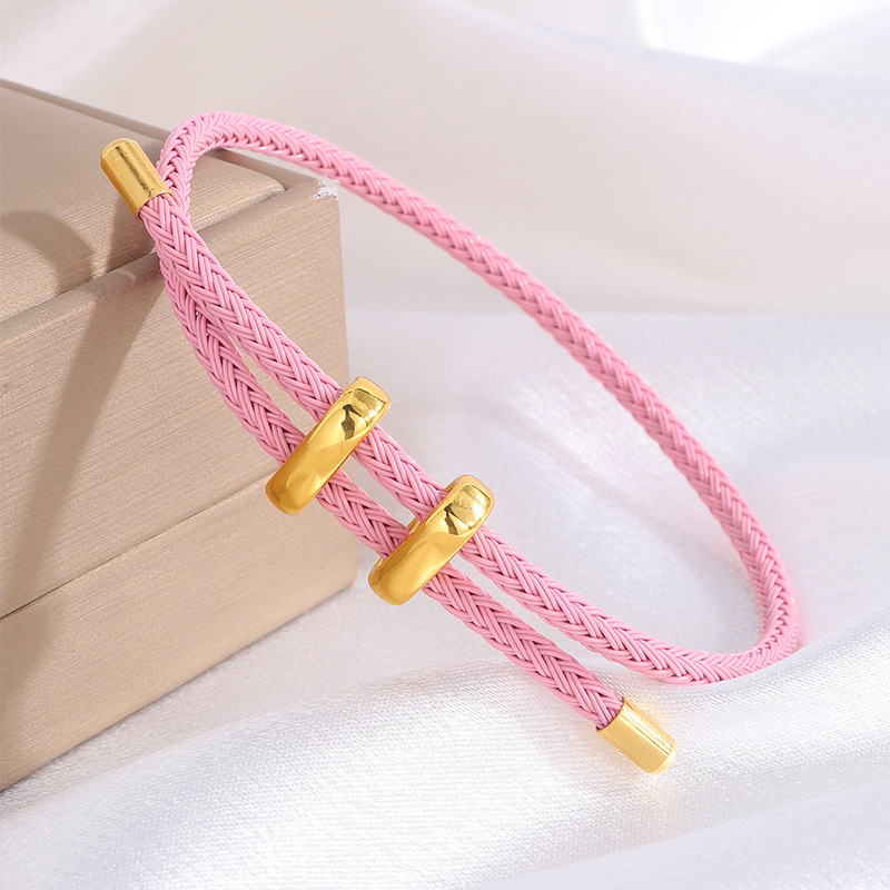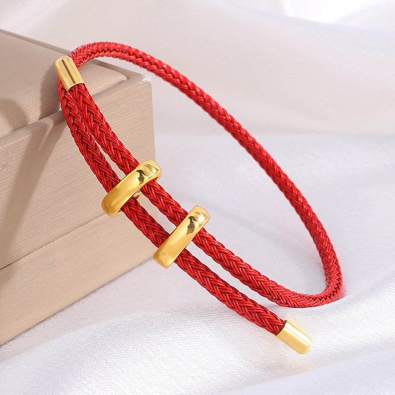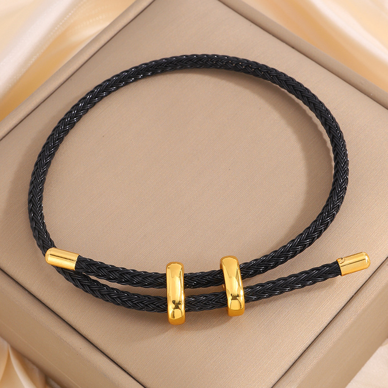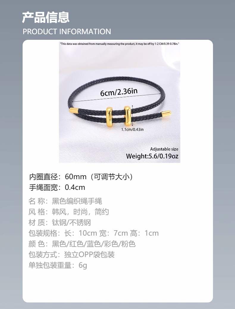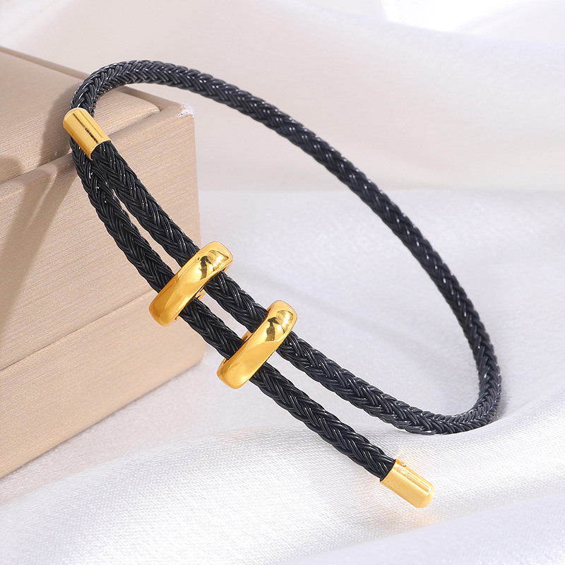 Cuerdas de acero de titanio impermeables a prueba de sudor ajustables hebilla en forma de I pulsera de cuerda de acero 3D de oro duro cuerdas de mano joyas parejas