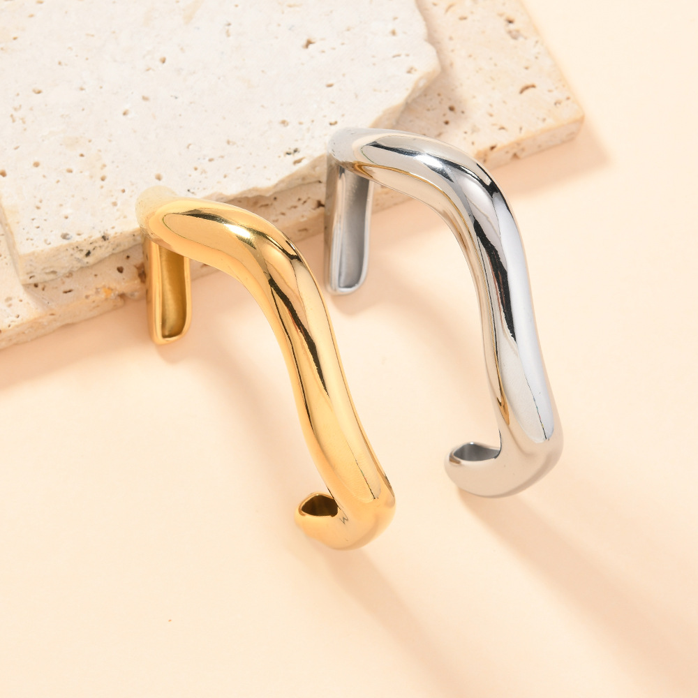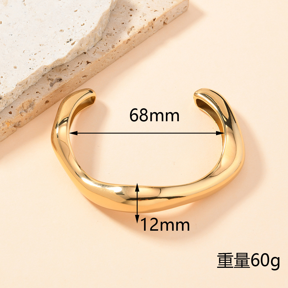 Europa y los Estados Unidos acero inoxidable transfronterizo joyas de fundición irregular ondas brillante brazalete exagerado personalidad abertura brazalete al por mayor