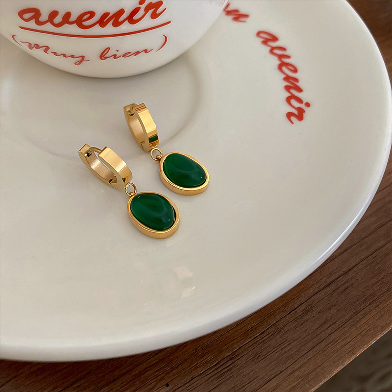 Wenjian 2023 nuevo Oval hebilla de La Oreja de acero de titanio de la vendimia pendientes de Esmeralda elegante nicho simple diseño del oído