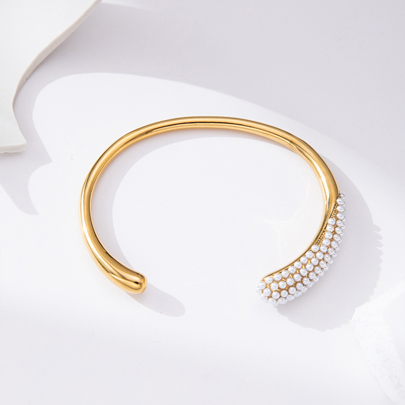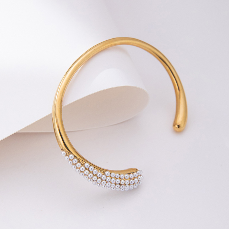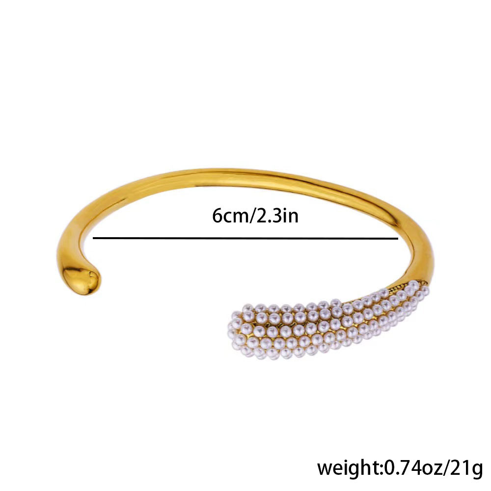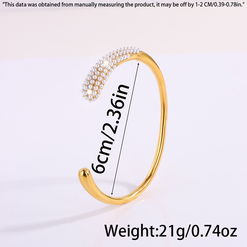 Pulsera de acero titanio, pulsera abierta de perlas y diamantes multicapa para mujer, sensación de alta gama, moda transfronteriza, pulsera de lujo ligero de 18k