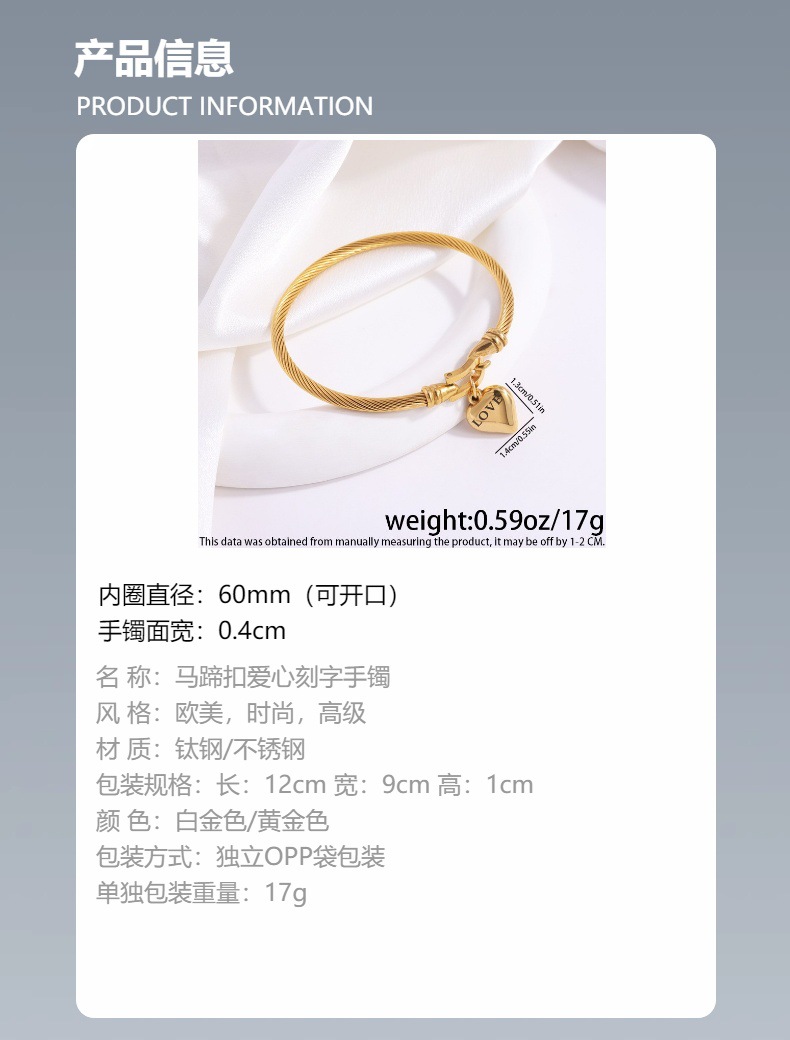 Brazalete de acero de titanio LOVE pareja amor universal hebilla de herradura de caballo pulsera de acero inoxidable niñas pulsera de personalidad de alto nivel