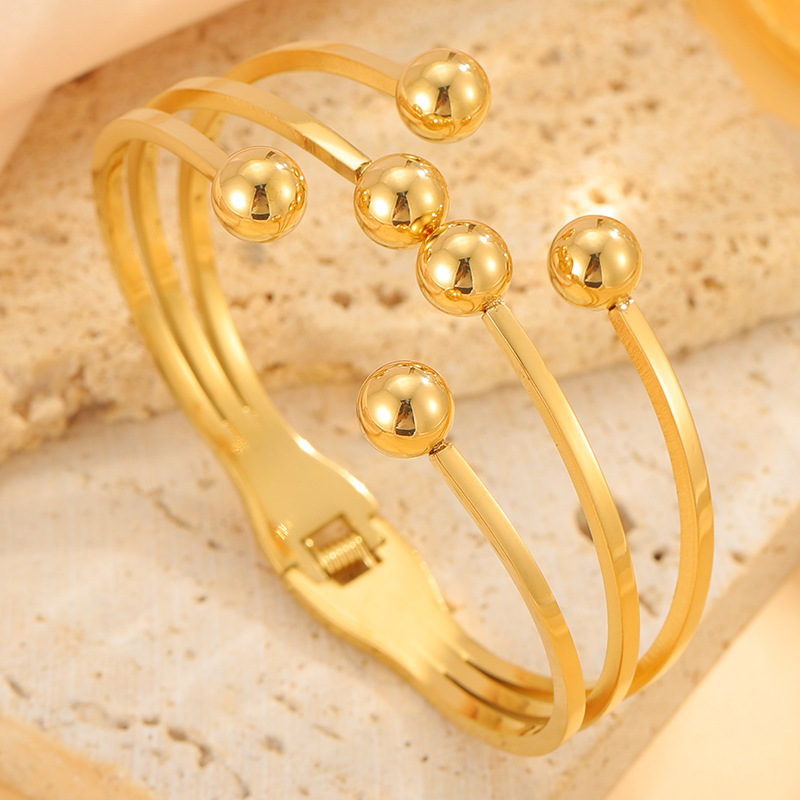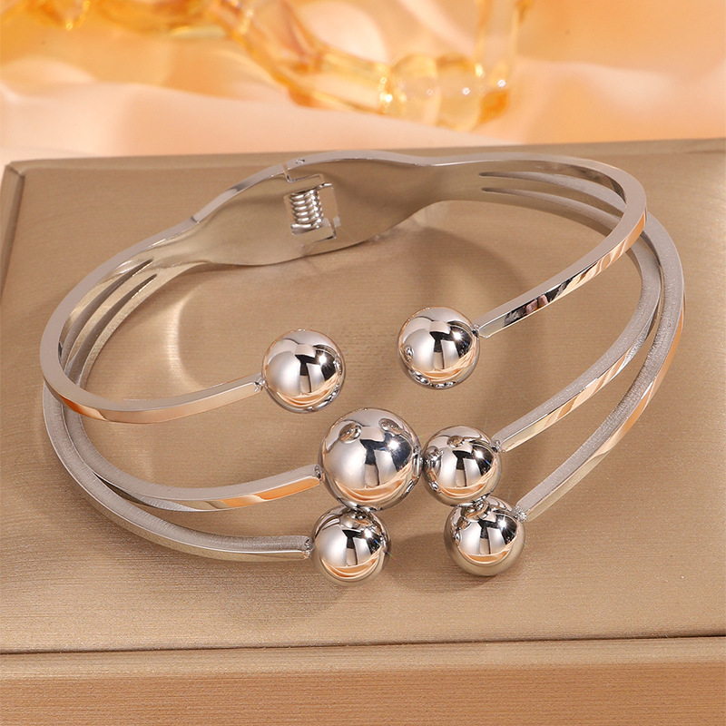 Brazalete de acero de titanio abertura esfera simétrica temperamento femenino versátil diseño de personalidad de alta calidad brazalete de acero de titanio no se desvanece