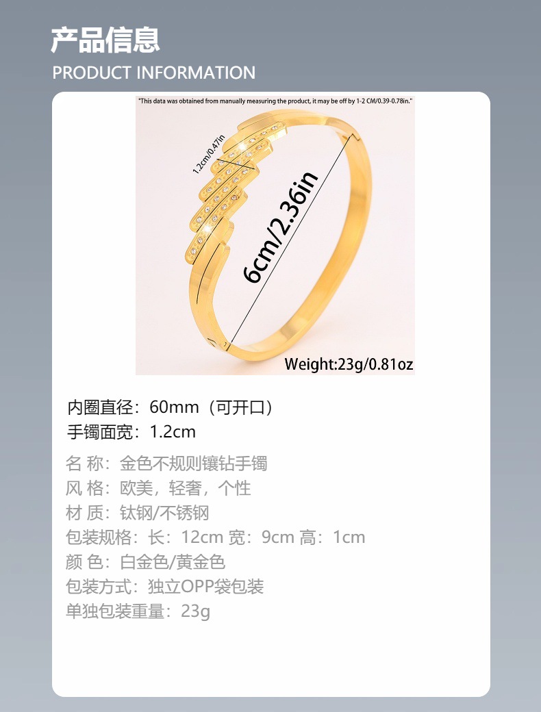 | Color | Brazalete de diamantes irregulares de oro, brazalete de diamantes irregulares de plata |