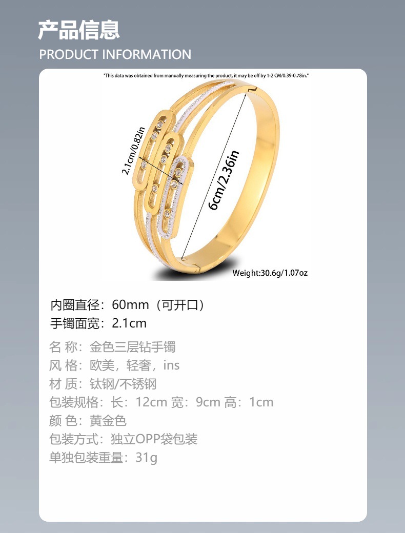 | Color | Dorado barro taladro pulsera hueco de tres capas |