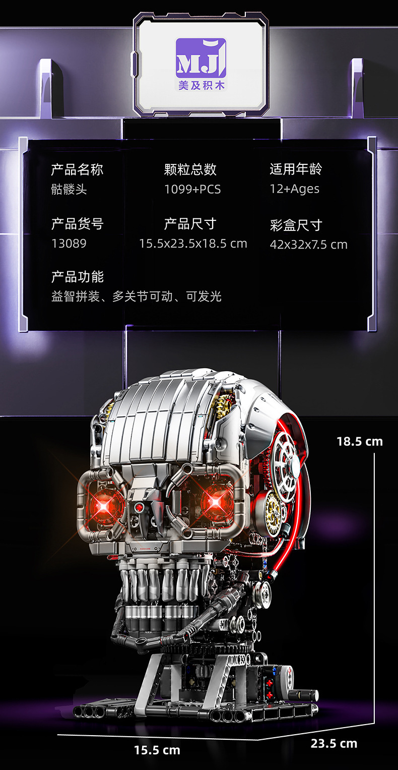 Meiji 13089 iluminación eléctrica horrores cráneo adornos compatibles con Lego niños puzzle ensamblaje juguetes de bloques de construcción