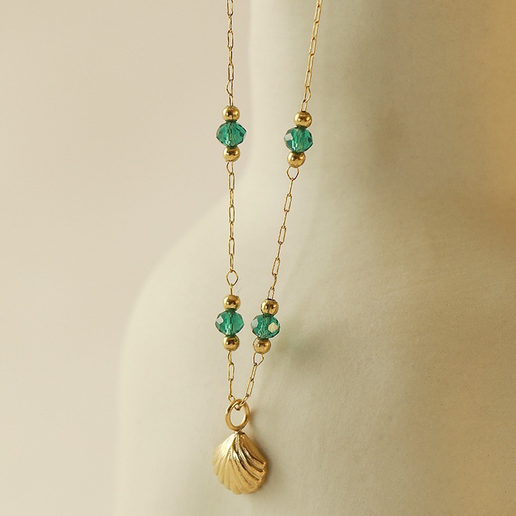 Wenjian tobillar conchas de moda femenina nicho de diseño K oro chapado 2024 nuevo verano acero titanio moda esmeralda perlas