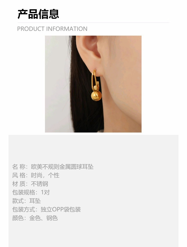 Nueva personalidad europea y americana, diseño de nicho, colgante de cuentas redondas de acero de titanio, pendientes simples irregulares, joyería femenina que no se desvanece