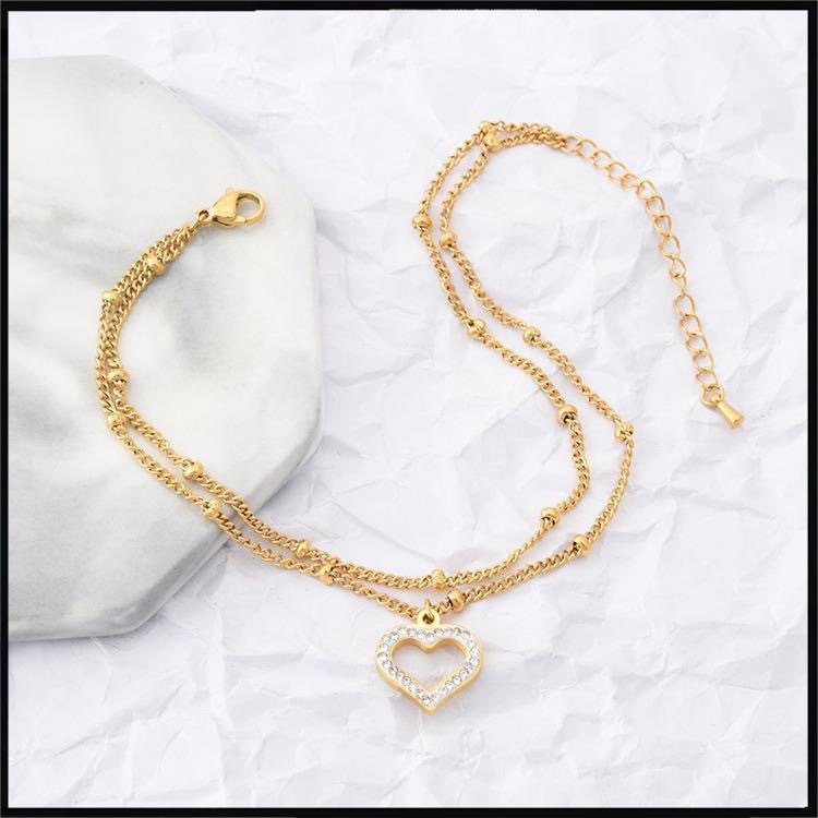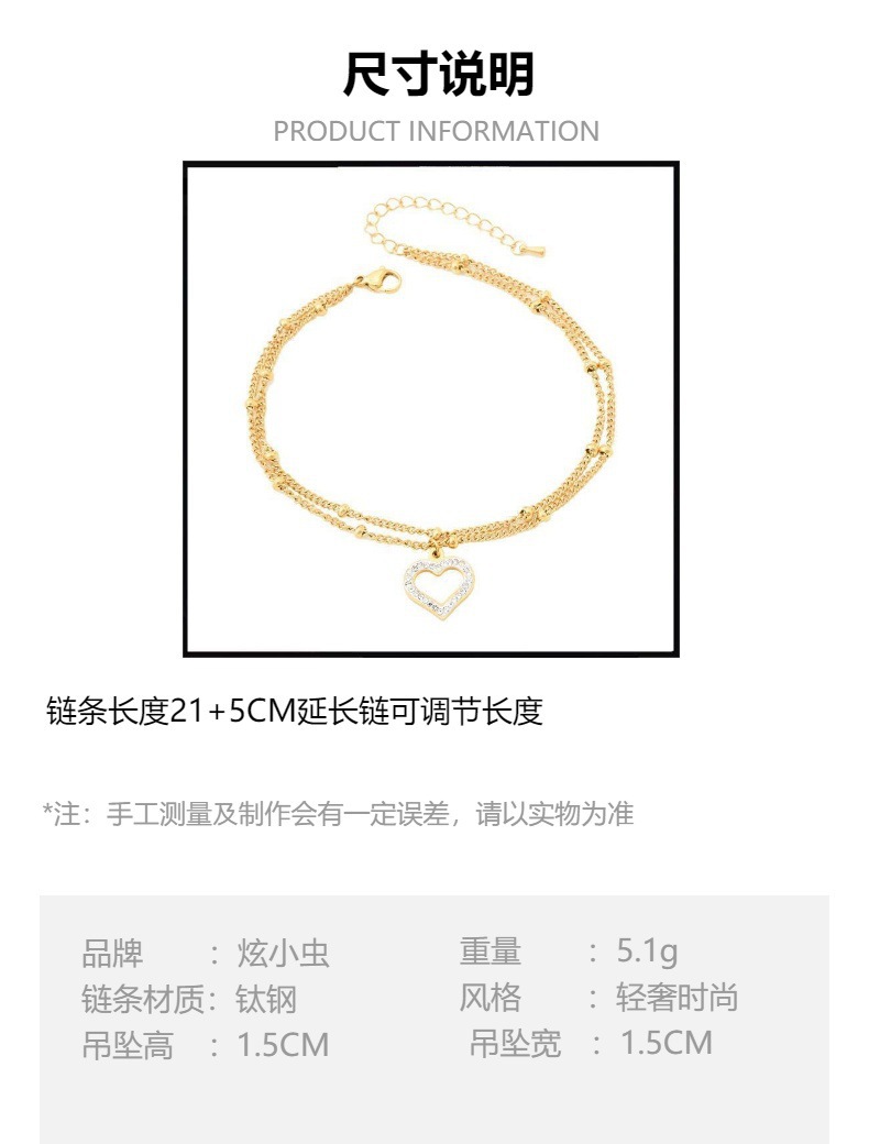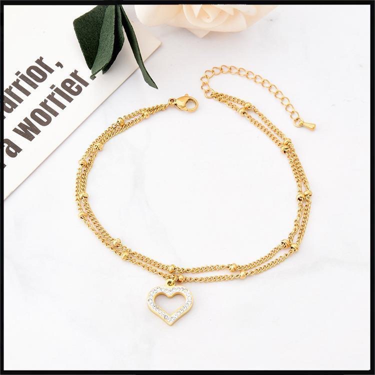 Red rojo joyería de moda titanio acero doble cadena del grano dulce corazón ZIRCON tobillo playa viento pie anillo femenino en stock