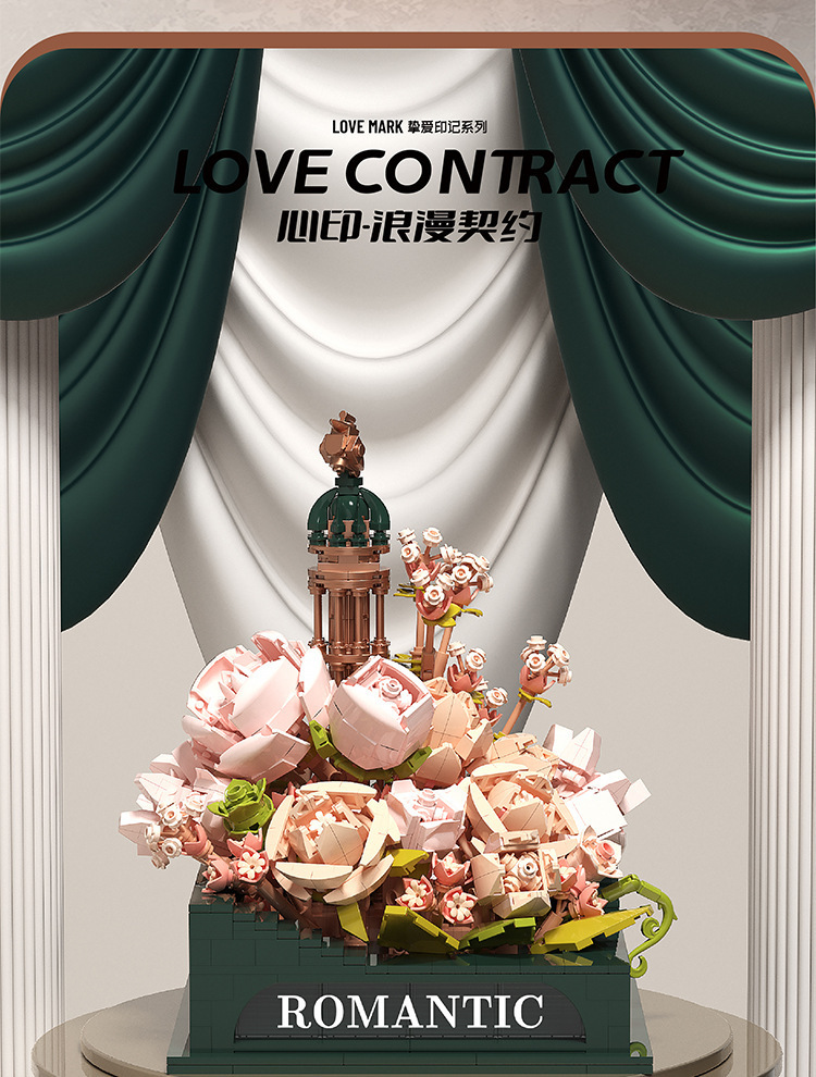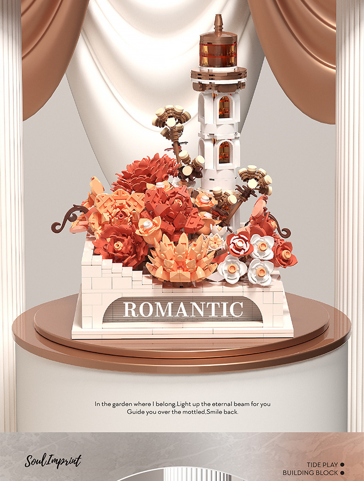 Compatible con bloques de construcción LEGO amor marca romántica flor eterna faro decoración rompecabezas montado juguete chica regalo