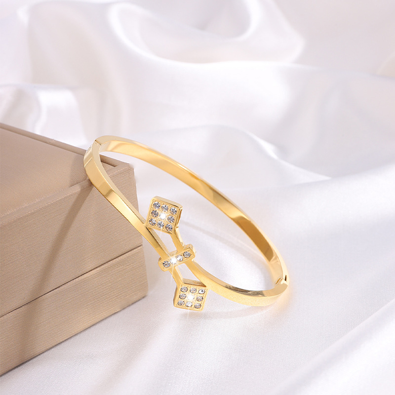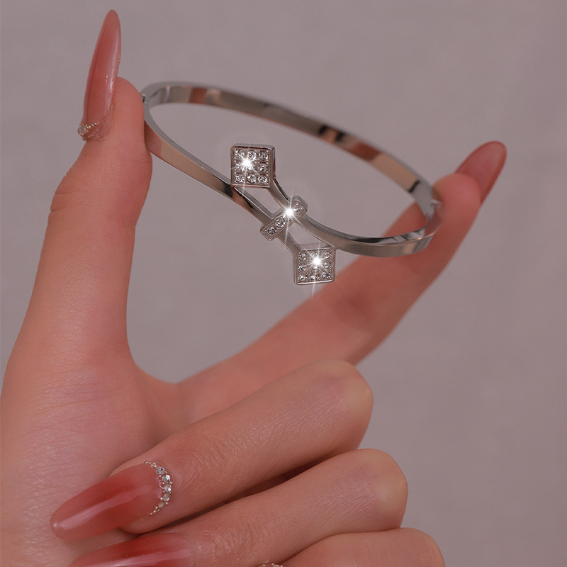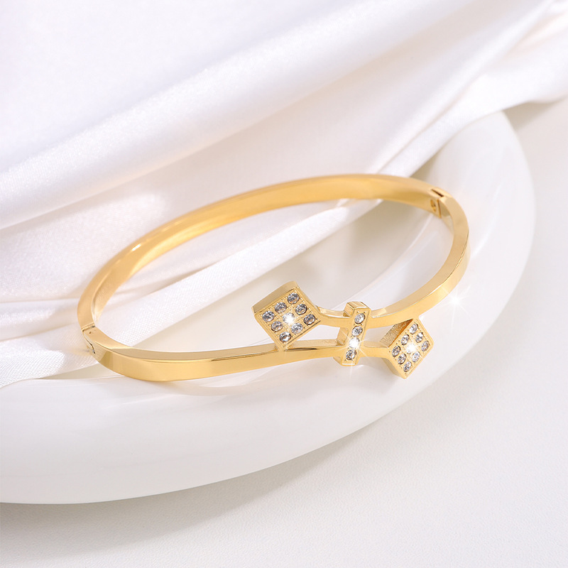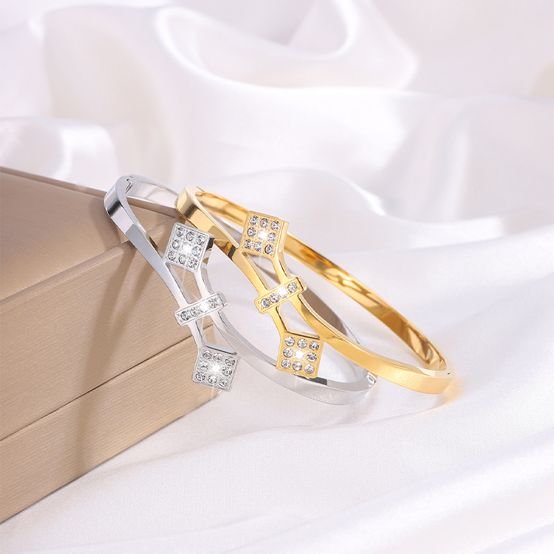 Brazalete de acero de titanio Waffle Personalidad no se desvanece Brazalete de diamantes de mujer abertura de pareja de alto nivel Brazalete de acero inoxidable