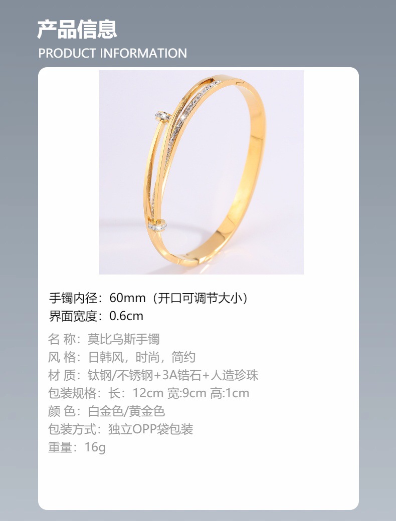 Brazalete de acero inoxidable para mujeres lujosas parejas japonesas y coreanas plateadas Mobius acero titanio joyas de diseño personalizado brazalete