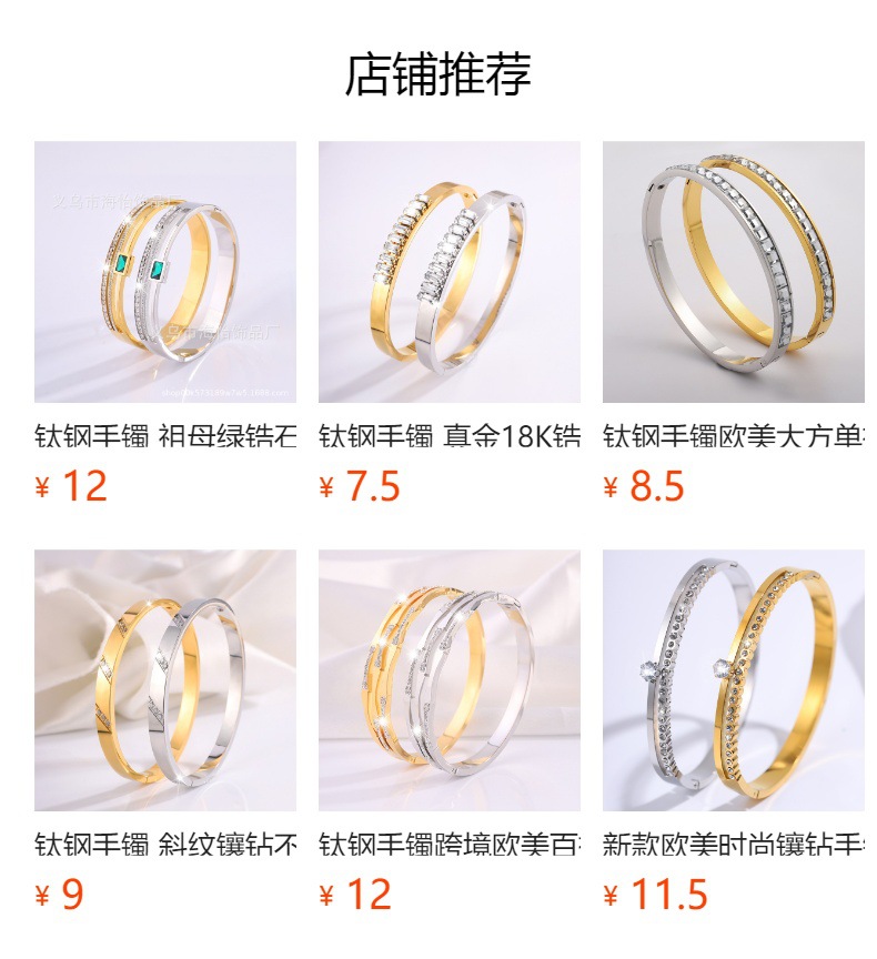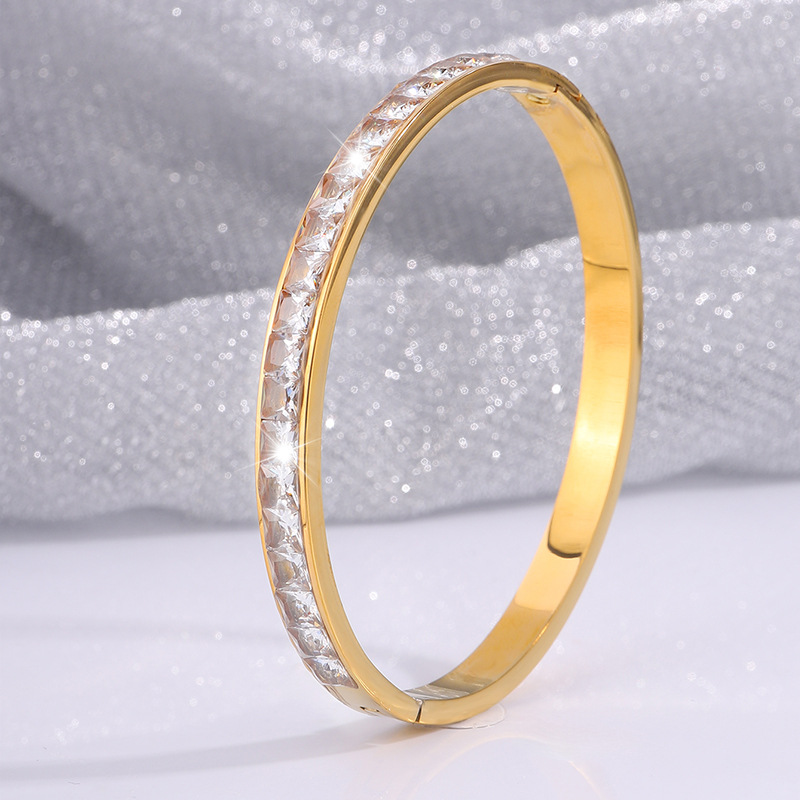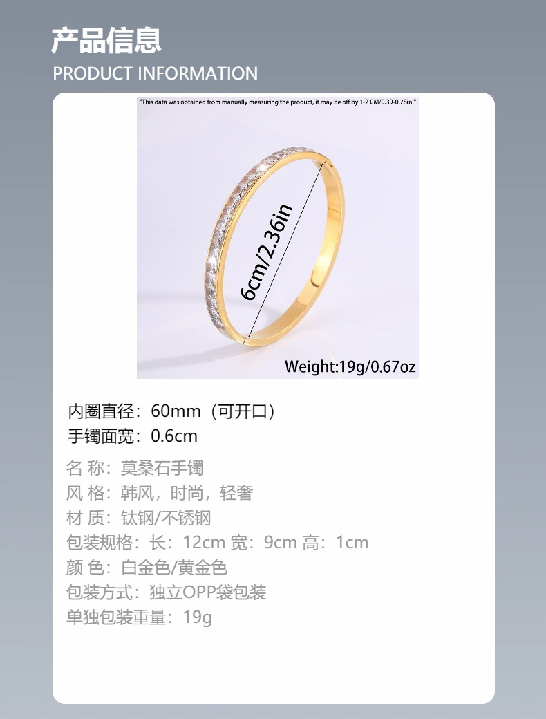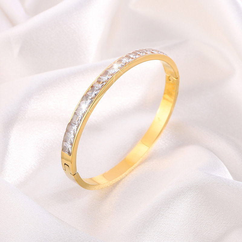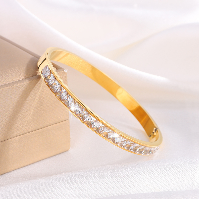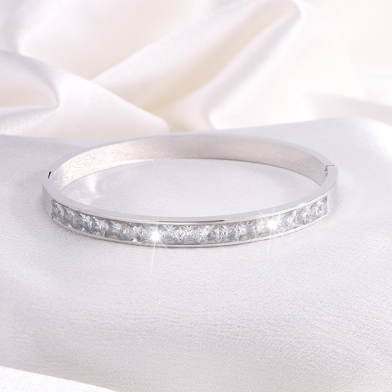 Brazalete de acero de titanio de diamantes de moissanita pulsera galvanizada al vacío de niñas de alta calidad de la moda europea y americana no se desvanece pulsera
