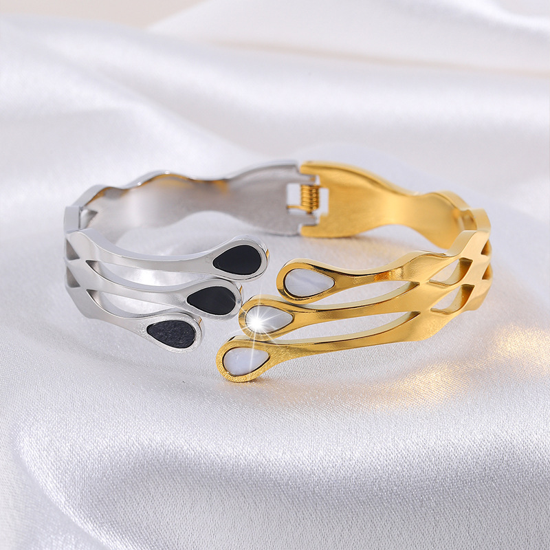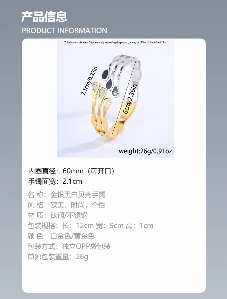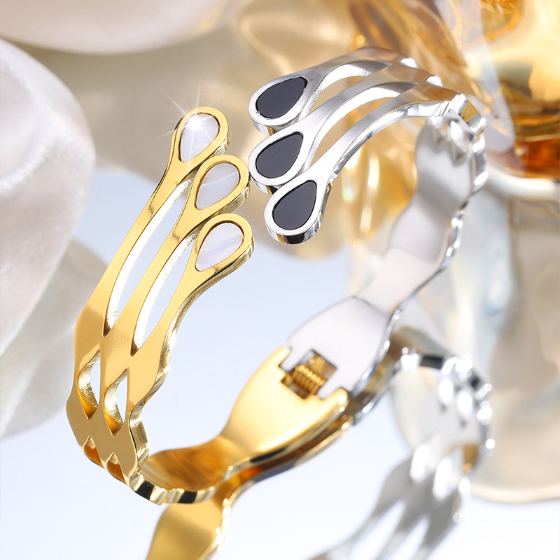 Europa y los Estados Unidos de moda hipster 18k oro blanco y negro pulsera de conchas de mujer versión coreana simple amiga pulsera de acero de titanio venta directa