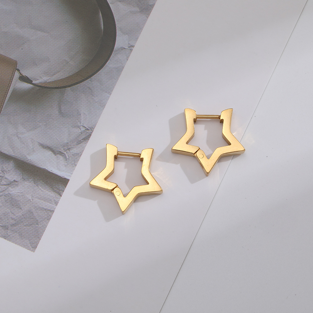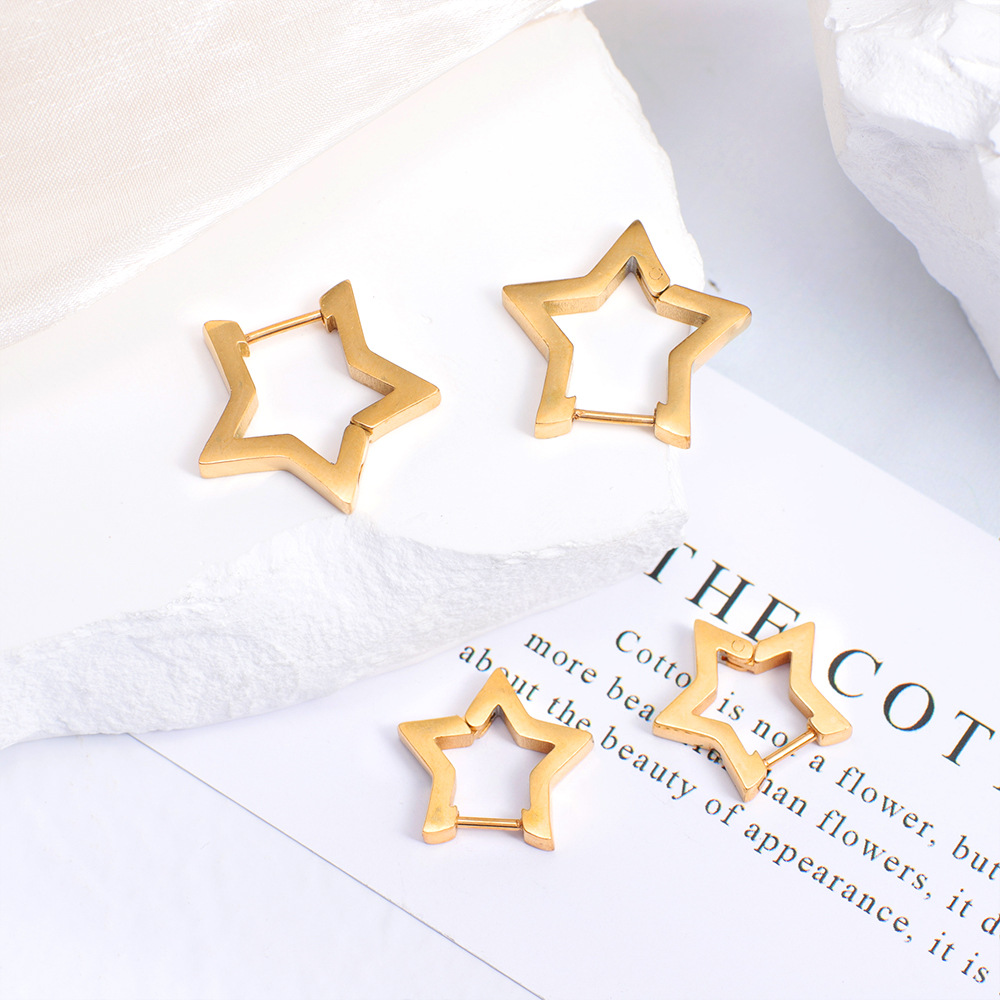 Anillo de hueso de oreja de acero inoxidable de acero de titanio hebilla de oreja de estrella de cinco puntas estilo coreano Chanel 18K oro pendientes de alta calidad en stock al por mayor