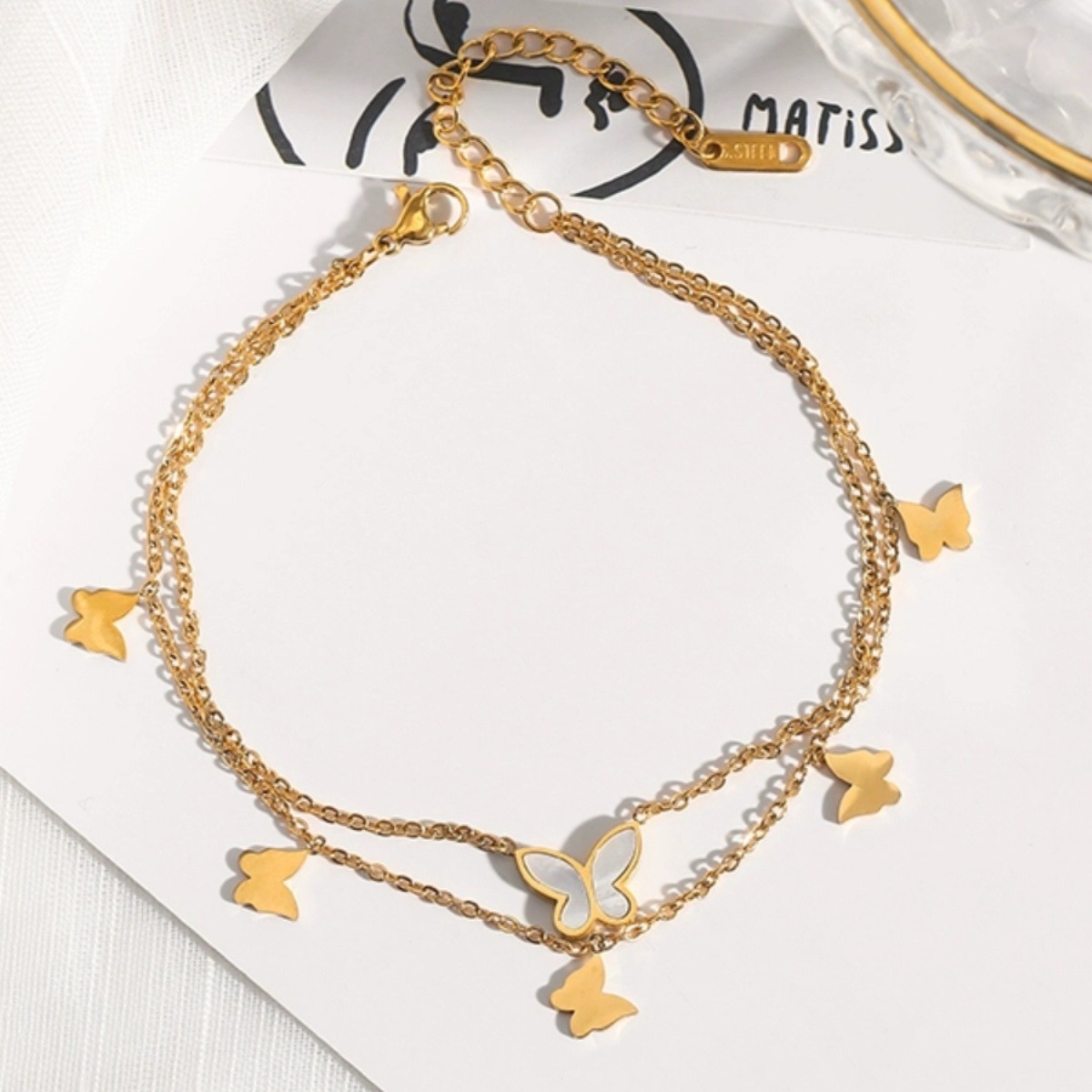Butterfly Bracelet de alta calidad 18k oro nuevo estilo de cadena de tobillo de acero de titanio no decolor sexy nicho de tobillo para mujeres