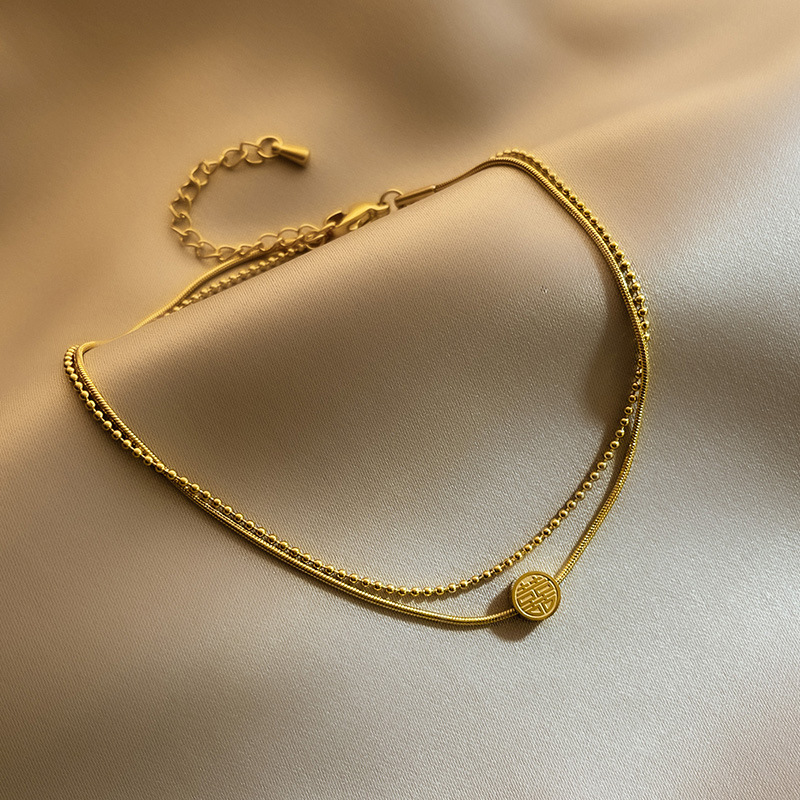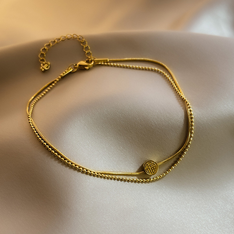 Fuzi doble tobillera sexy femenina versión coreana simple Mori tobillera desnuda personalidad titanio cadena de pie de acero temperamento tobillera neto