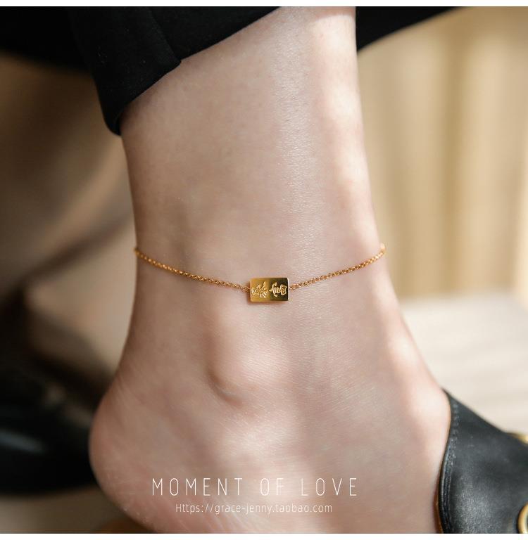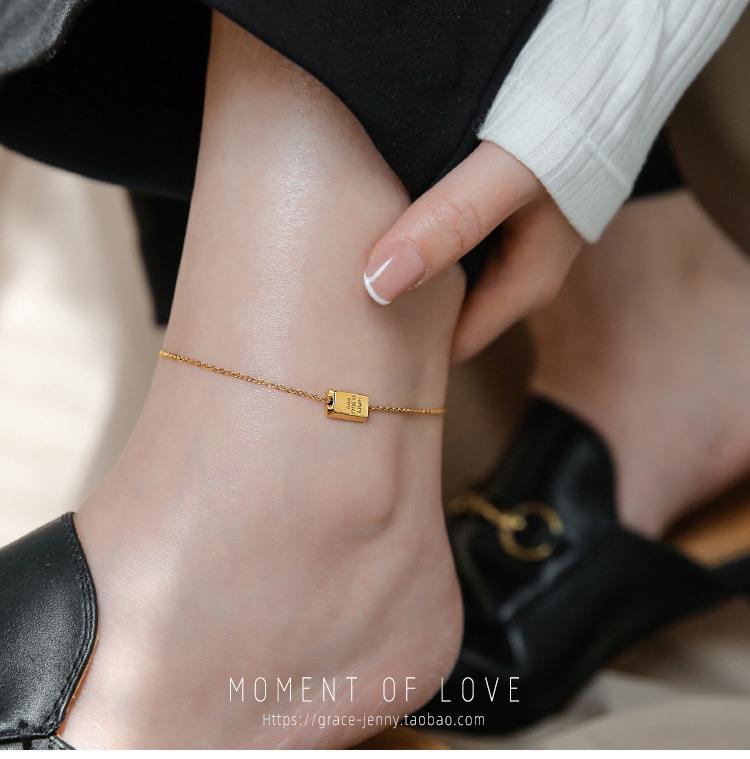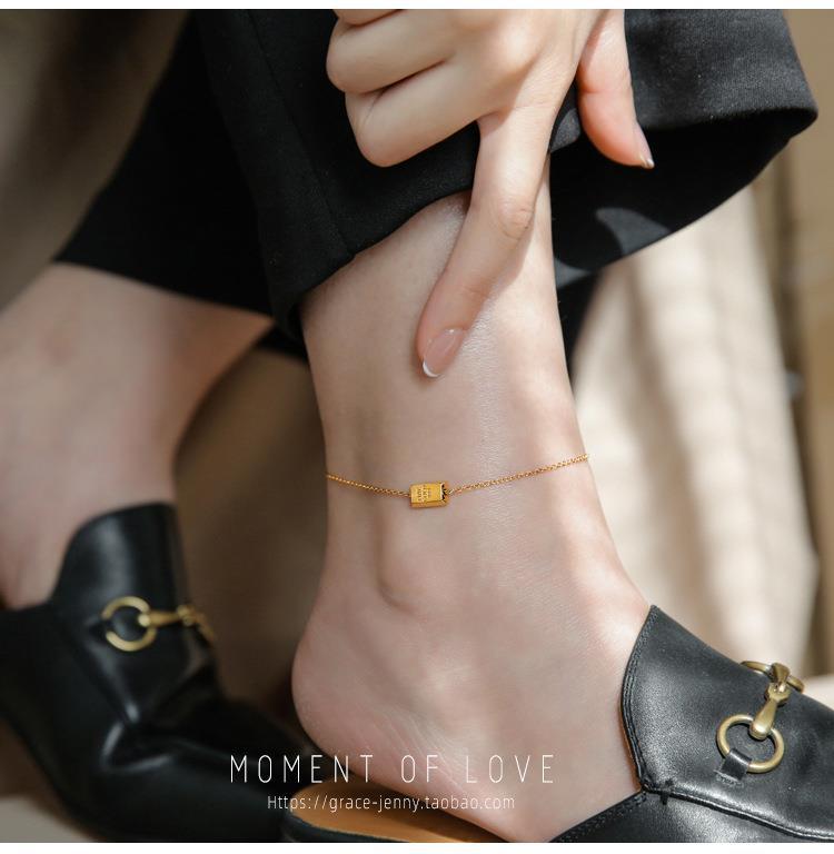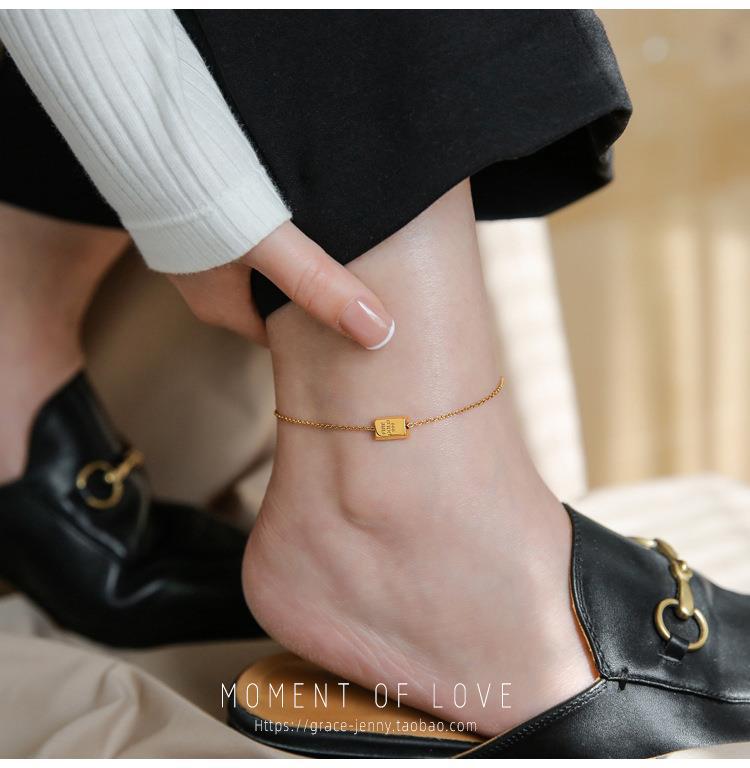Nueva pulsera de tobillo de barra de oro de lujo, pulsera de tobillo de oro de 18K, diseño de lujo ligero y exclusivo, pulsera de tobillo de alta gama que no se decolora.