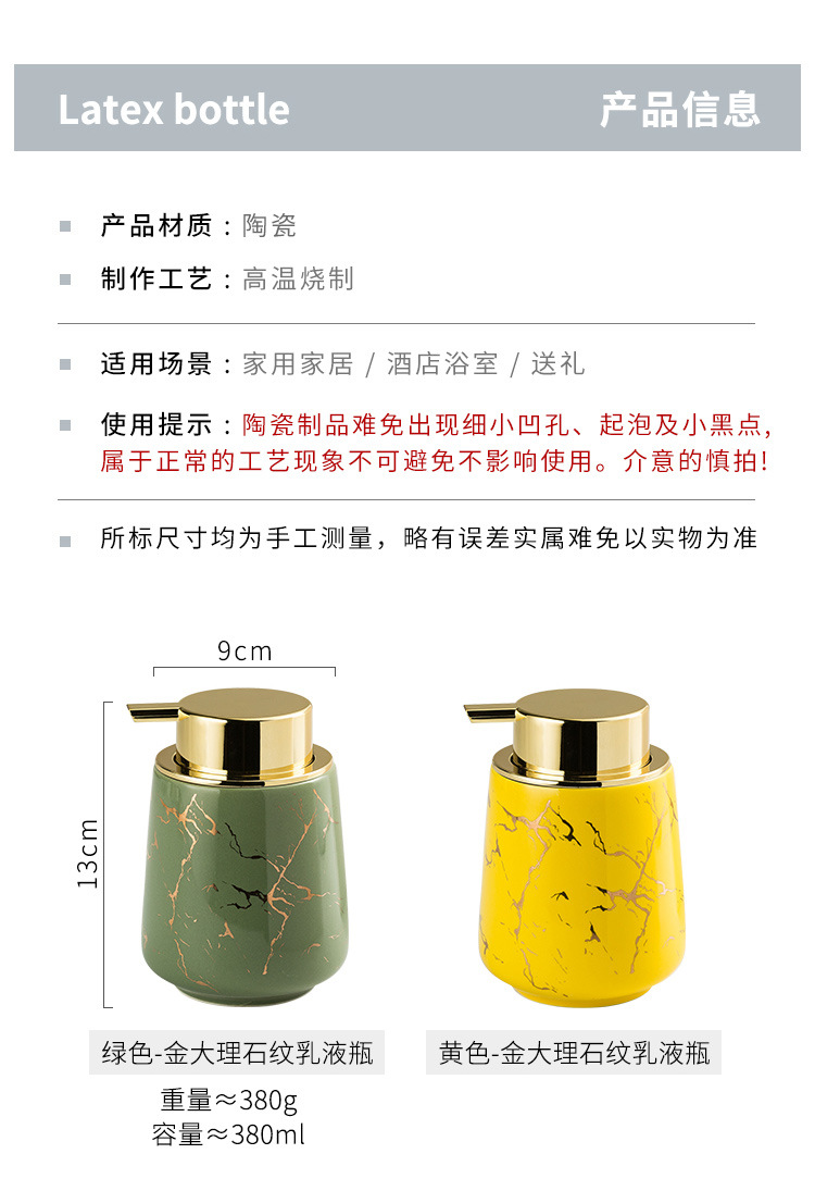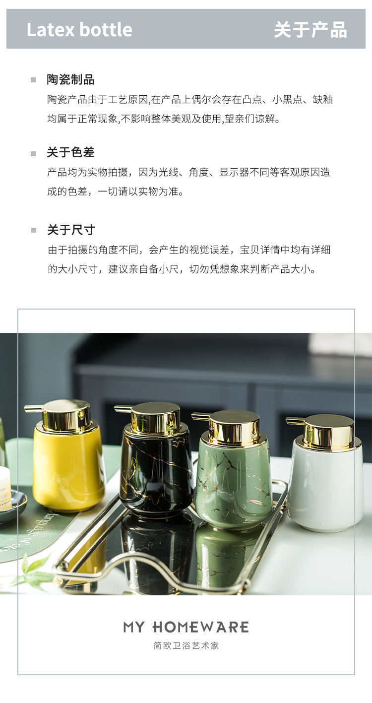 Botella de espuma de cerámica simple mano desinfectante Gel de ducha champú desinfectante loción prensa botella Hotel botella de hogar