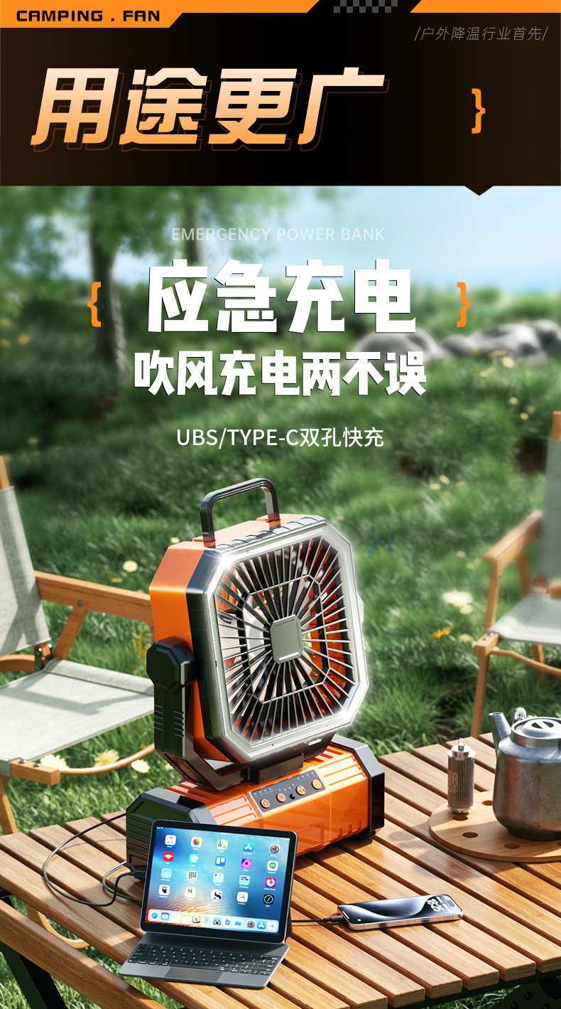 Ventilador de carga para acampar al aire libre, batería de larga duración, refrigeración para automóvil usb, aire acondicionado, carpa de pesca, artefacto de enfriamiento