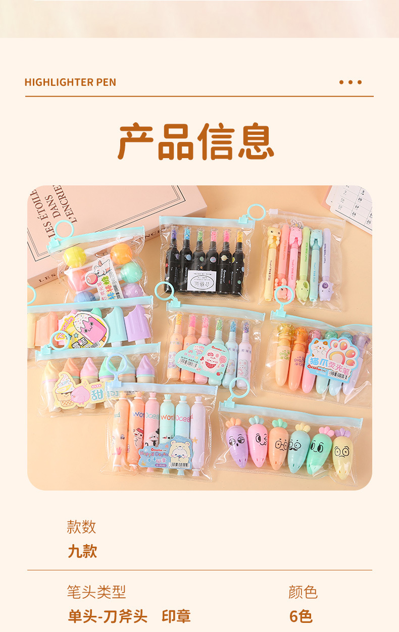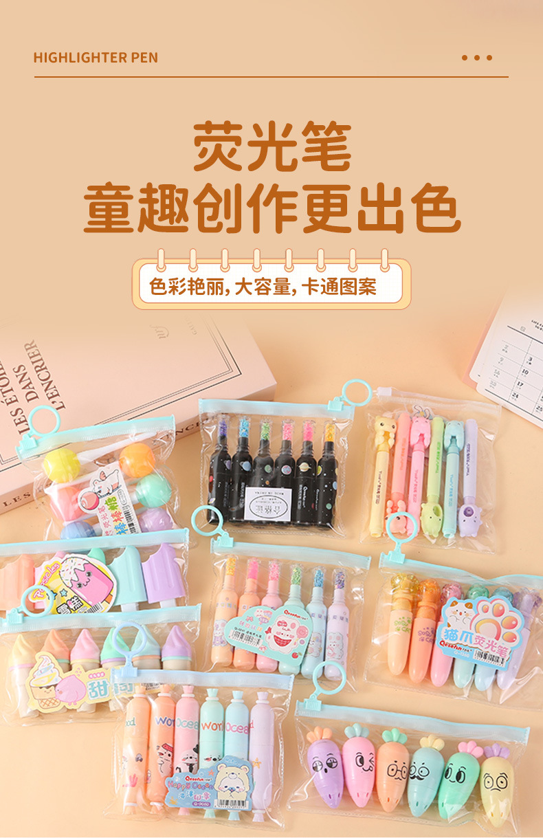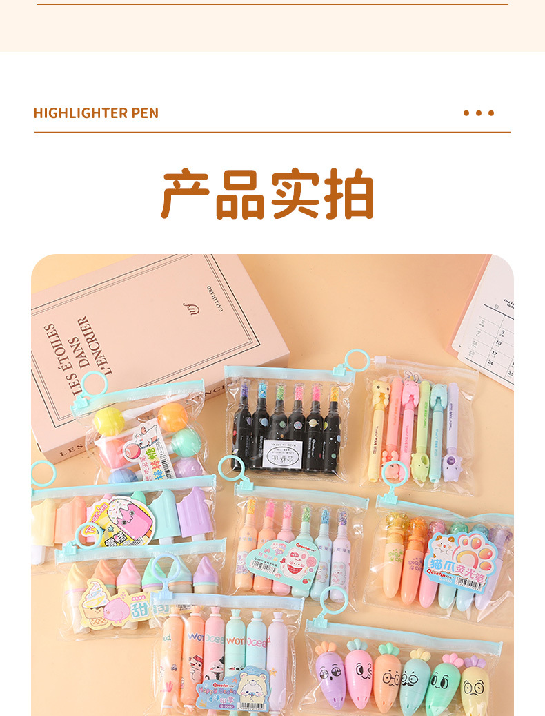 | Color de recarga | Marine Seal resaltador,Resaltador de botella de vino,Resaltador de cono,Resaltador de garra de gato,Resaltador de oso,Resaltador de helado,Pluma resaltador de piruleta,Resaltador de rábano,Resaltador de botella de vino planeta |