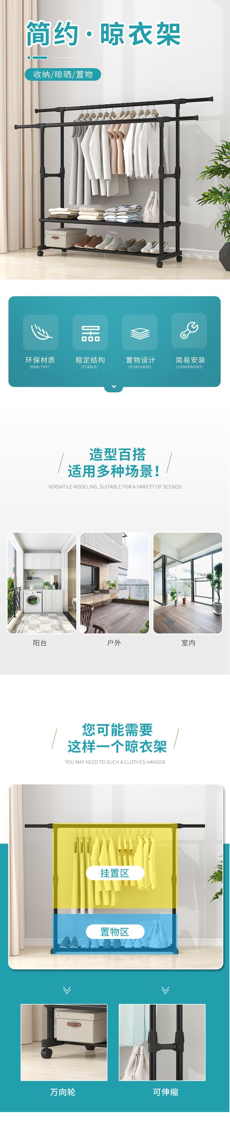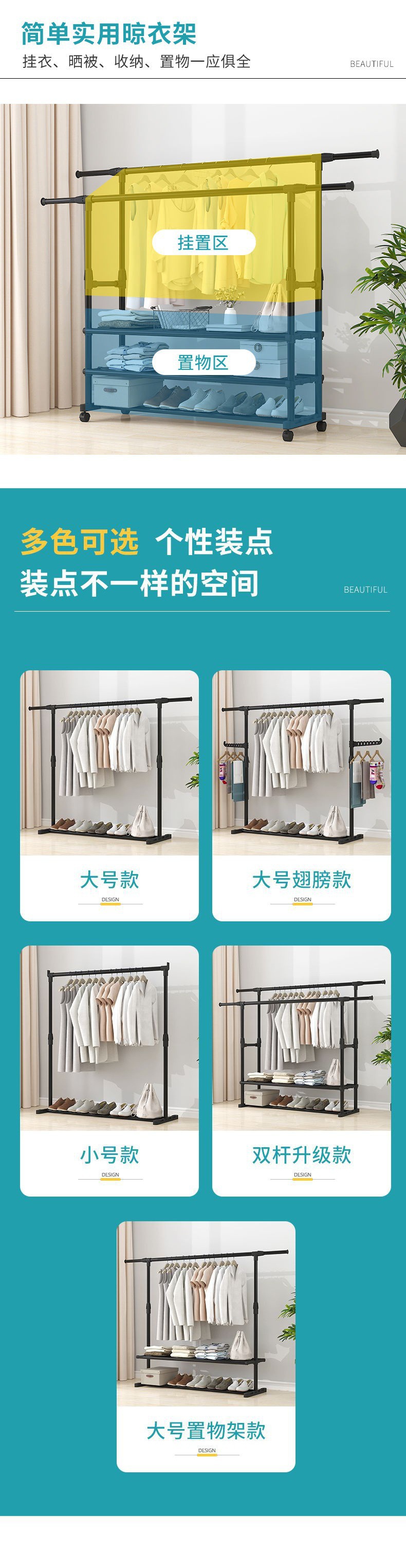 percha de secado de ropa doméstica suelo de secado vertical grosor de casa de alquiler ropa de dormitorio balcón barra de ropa fría simple telescópico