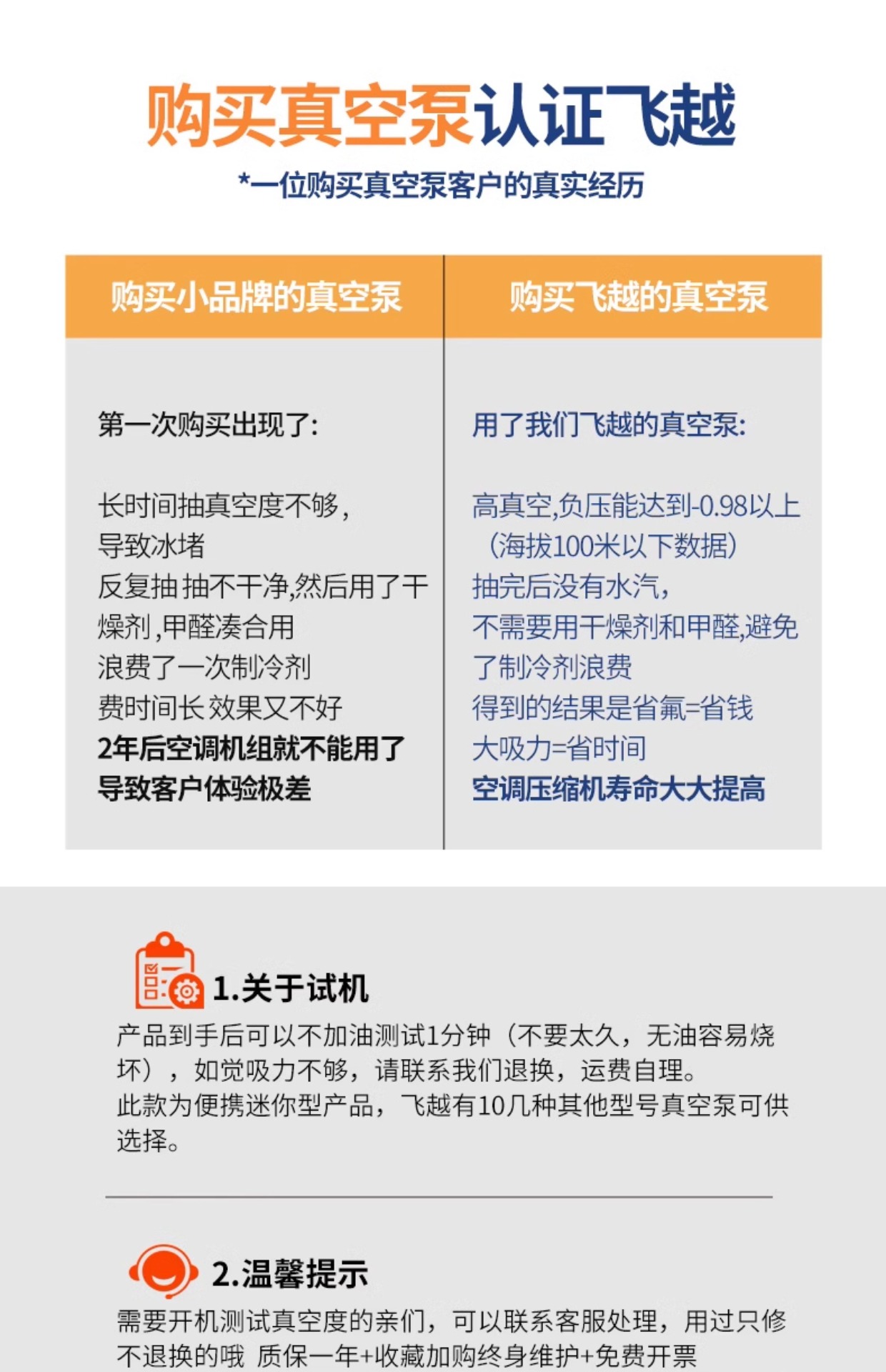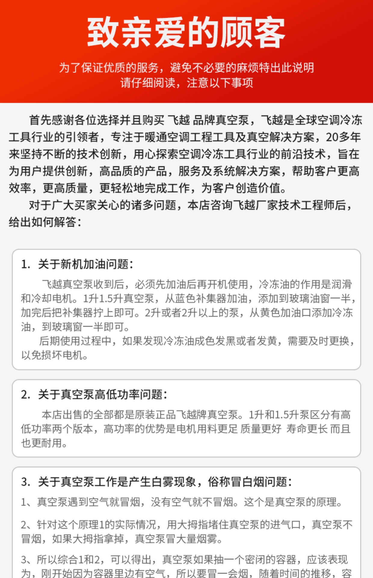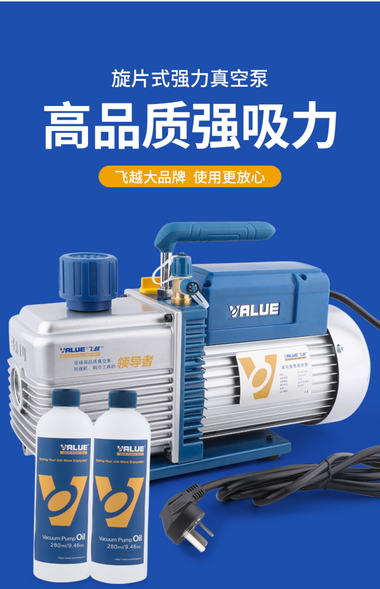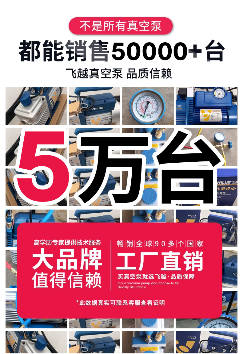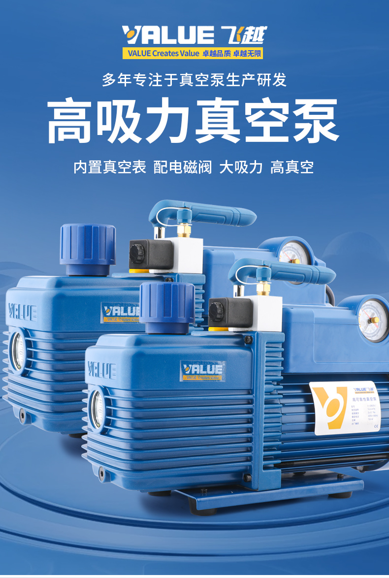 | Especificaciones | <<授权代理-原装-质保一年>>,<<FY-1H-N【迷你1升】150W 免费开票 送豪礼>>,<<FY-1C-N【高功率单级1升】配表(3匹内用 免费开票) 3匹内用 免费开票>>,<<FY-1H-N(迷你1升)配压力表 150W 免费开票>>,<<FY-1C-N(配阀和压力表)高功率 3匹内用 免费开票>>,<<FY-1.5H-N【迷你1.5升泵】180W 3匹内用 免费开票>>,<<FY-1.5C-N【单级1.5升】配表180W 3匹内用 免费开票>>,<<FY-2C-N【2升单级】配表250W 5匹内用 免费开票>>,<<FY-3C-N【3升单级】370W 5匹内用 免费开票 送可视表>>,<<FY-4C-N【4升单级】550W 10匹内用 免费开票 送可视表>>,<<V-i125-R32【1.5升/180W】防返流无刷电机 免费开票 送可视表>>,<<2FY-2C-N【2升双级】370W 5匹内用 免费开票 送可视表>>,<<2FY-4C-N【4升双级】750W 10匹通用 免费开票 送可视表>>,<<2FY-6C-N【6升双级 R32无刷电机】 联系客服 享优惠价格>>,<<V-i120SV防返流【单级1升带表】 3匹内用 免费开票>>,<<V-i140SV防返流【单级2升带表】5匹内用 免费开票 送可视表>>,<<V-i180SV防返流【单级4升带表】10匹内用 免费开票 送可视表>>,<<V-i280SV【4升双级】750W 联系客服 享优惠价格>>,<<V-i240SV防返流【双级2升带表】5匹内用 免费开票 送可视表>>,<<V-i240-R32【2升双级配表】防反流无刷电机 免费开票 送可视表>>,<<VRP-15D【7升双级防爆】工业级20匹内用 联系客服 享优惠价格>>,<<飞越真空泵补集器【油箱盖】 1-2升泵通用>>,<<飞越真空泵油箱+补集器 1升泵用>> |