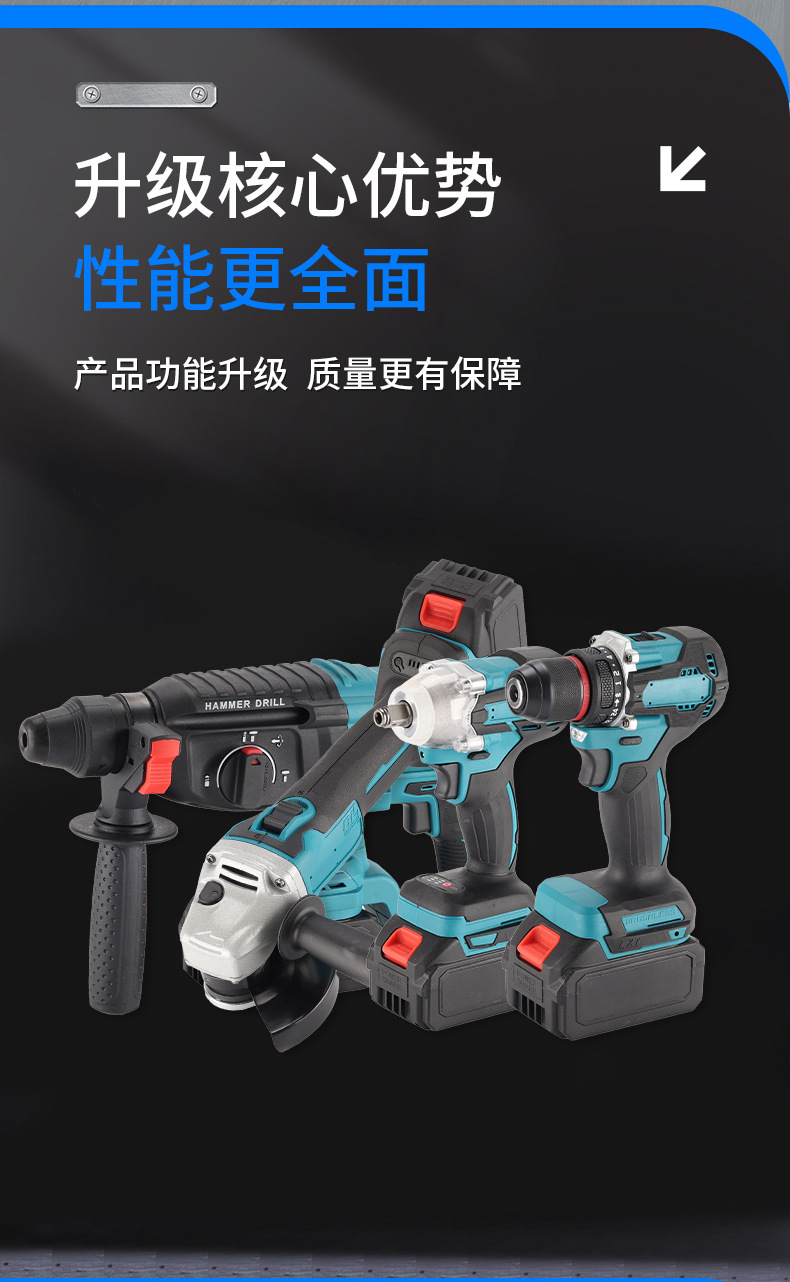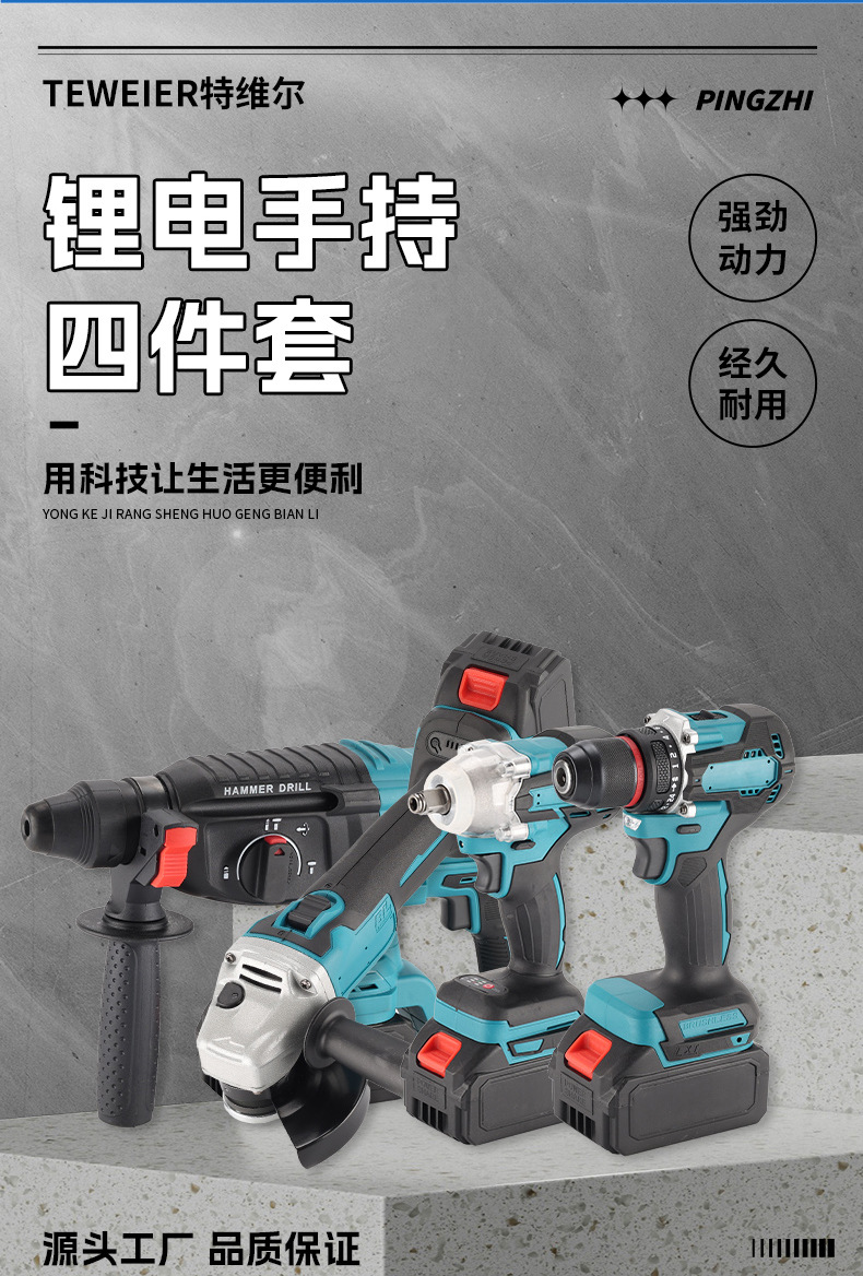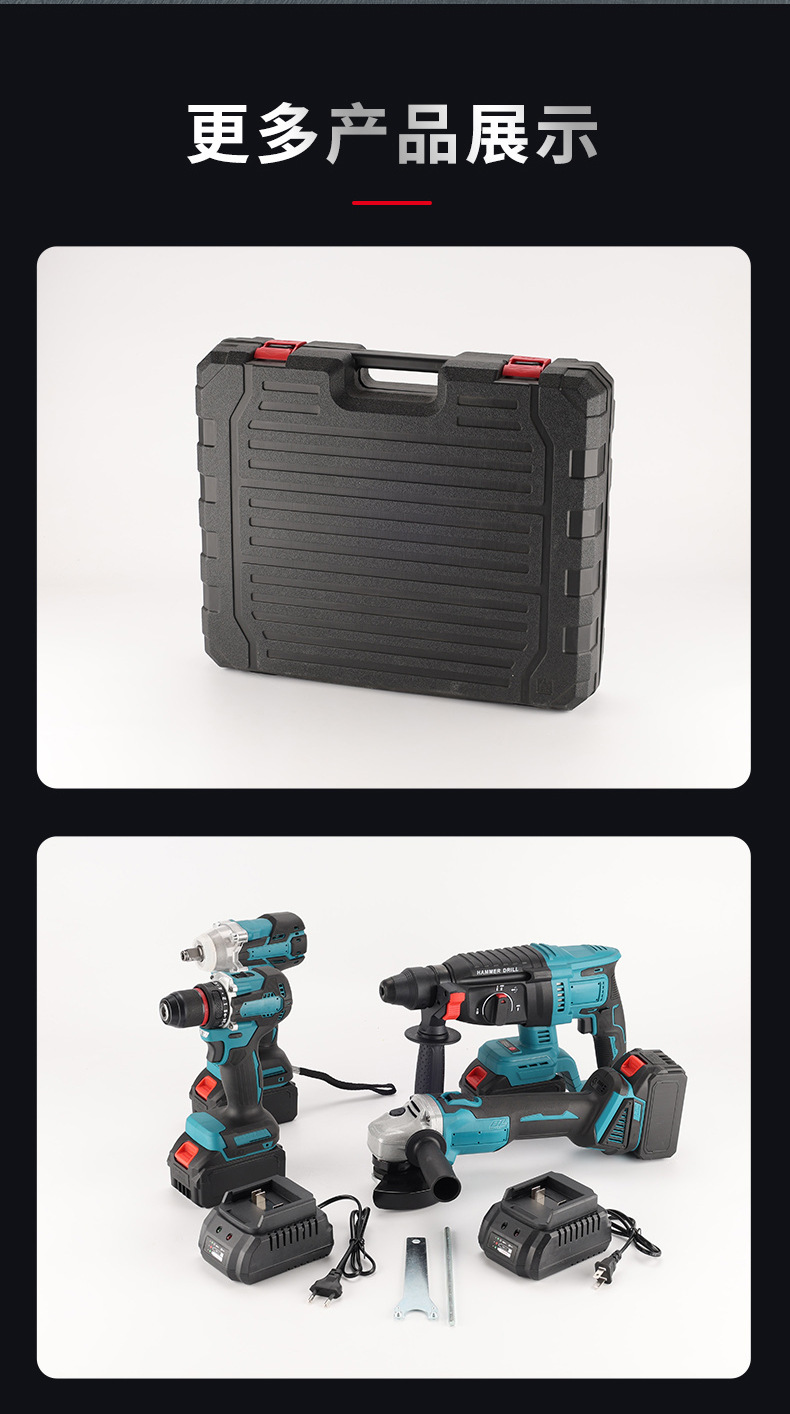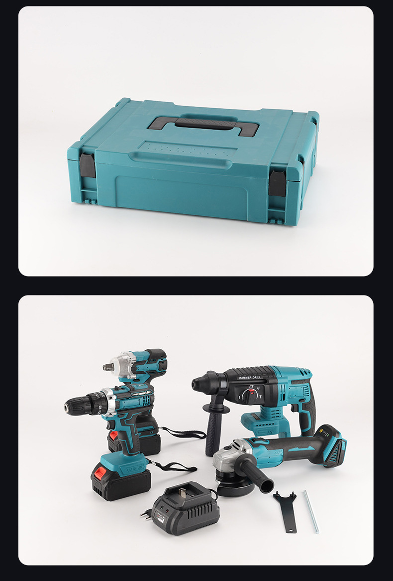 Herramientas de batería de litio multifuncionales transfronterizas de cuatro piezas Taladro eléctrico de mano Llave eléctrica Amoladora angular Martillo eléctrico Herramientas eléctricas Daquan