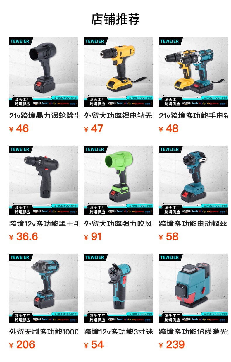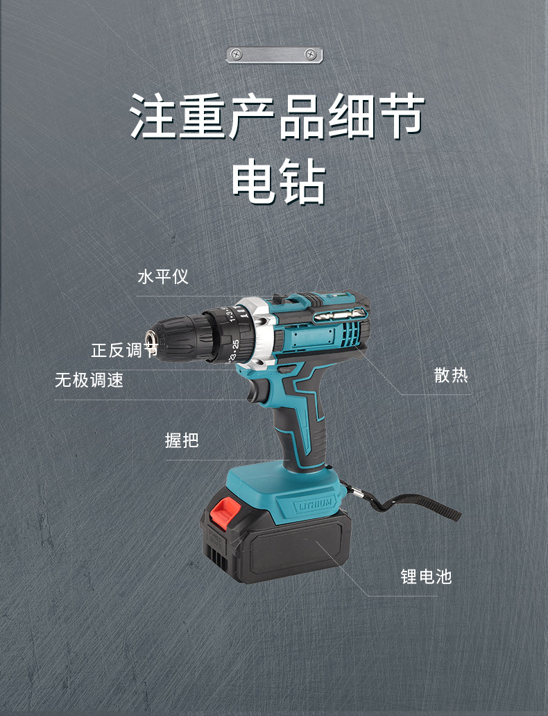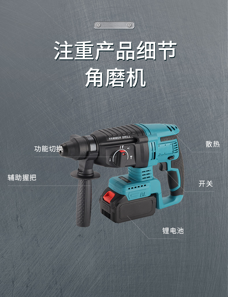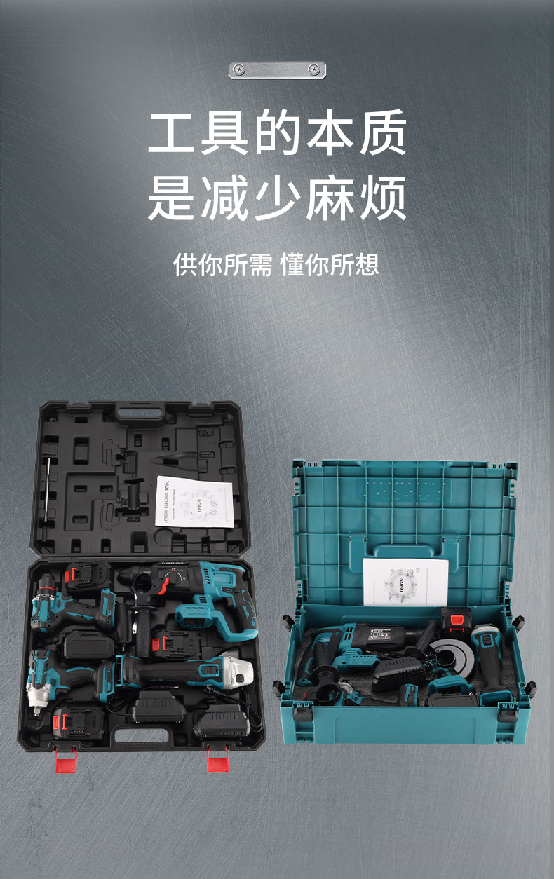 Herramientas de batería de litio multifuncionales transfronterizas de cuatro piezas Taladro eléctrico de mano Llave eléctrica Amoladora angular Martillo eléctrico Herramientas eléctricas Daquan
