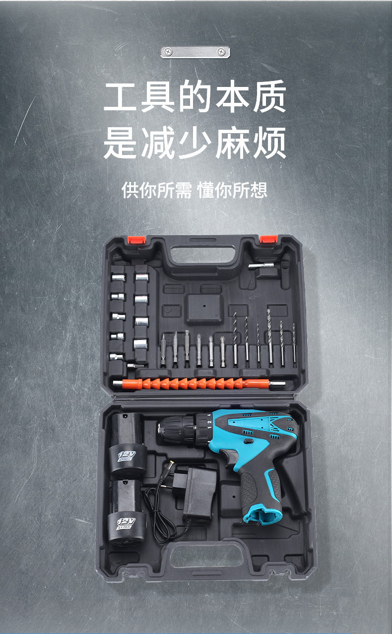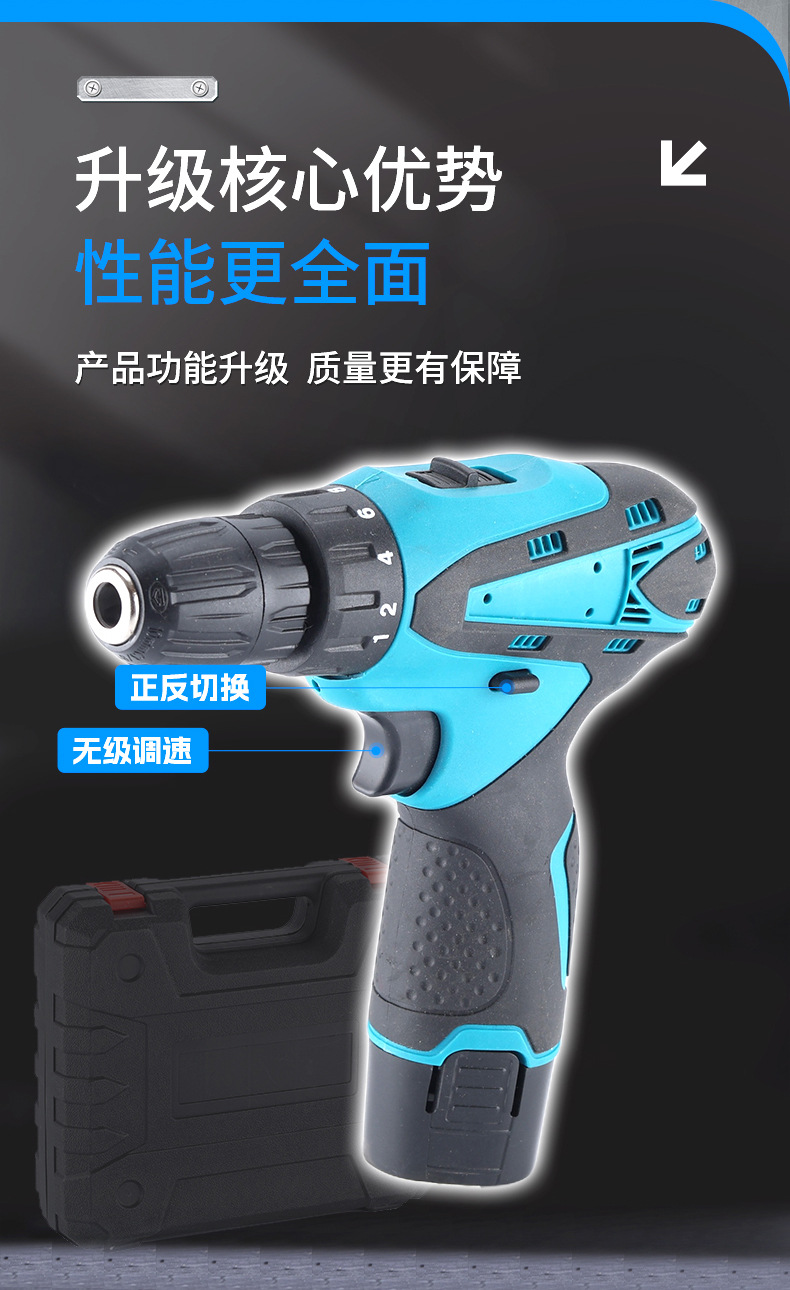 Comercio exterior 12v destornillador de carga doméstico multifuncional taladro eléctrico de litio transfronterizo portátil inalámbrico conjunto de taladro de mano