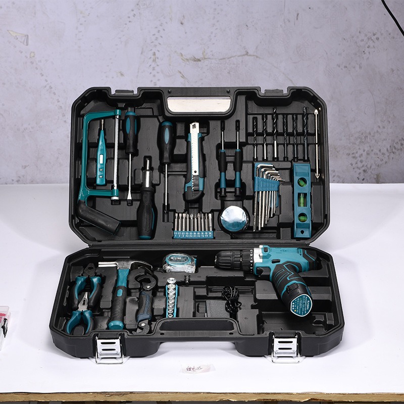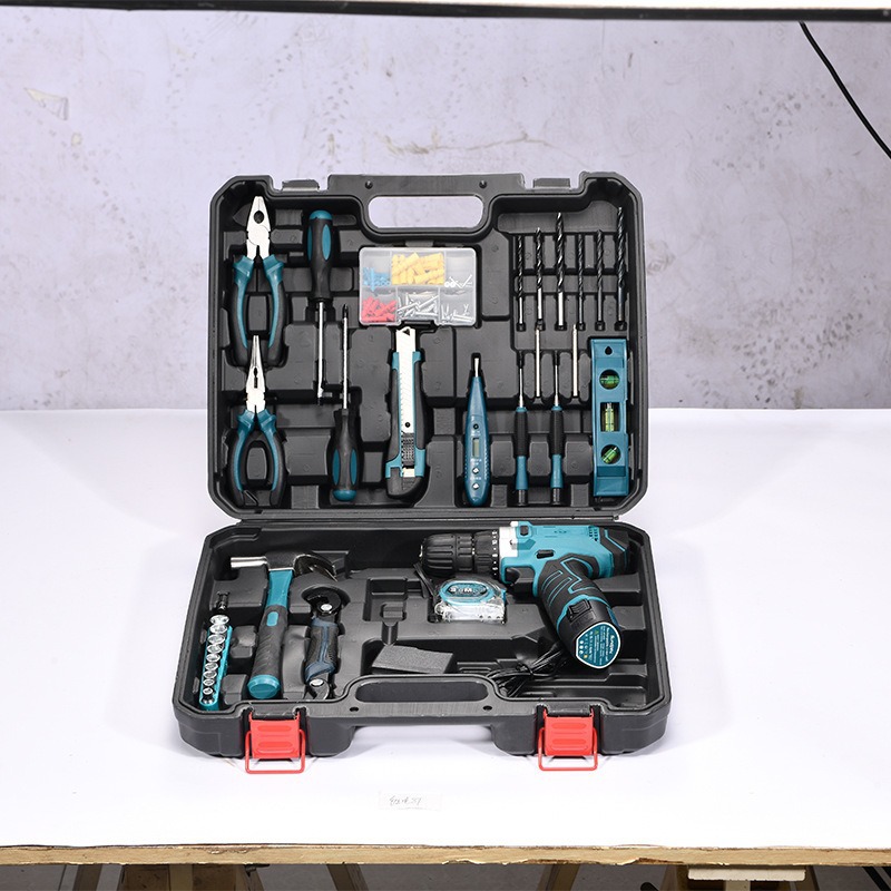 Caja de herramientas personalizada, conjunto de perforación eléctrica multifuncional, conjunto completo de herramientas de hardware doméstico, caja de almacenamiento completa